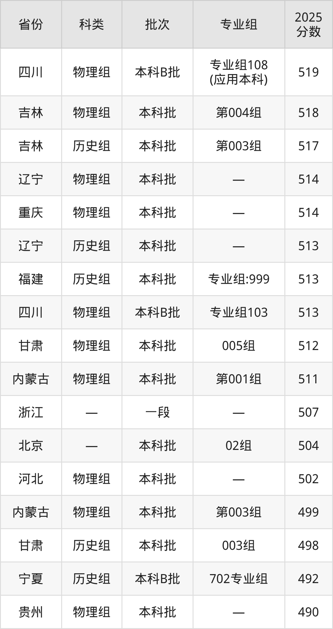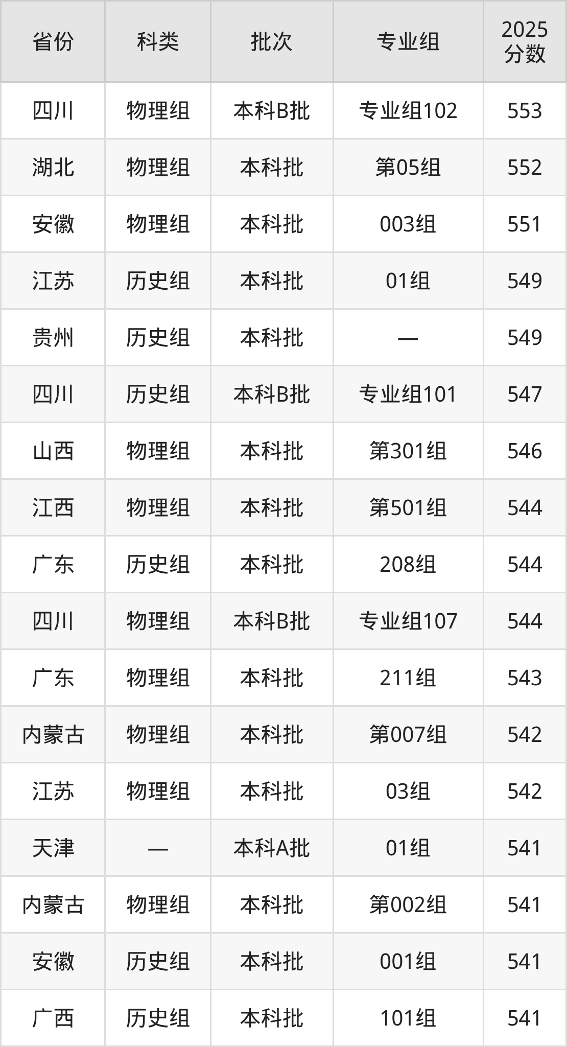 下面是西南科技大学2025年在全国各省的录取分数线一览表,供参考: