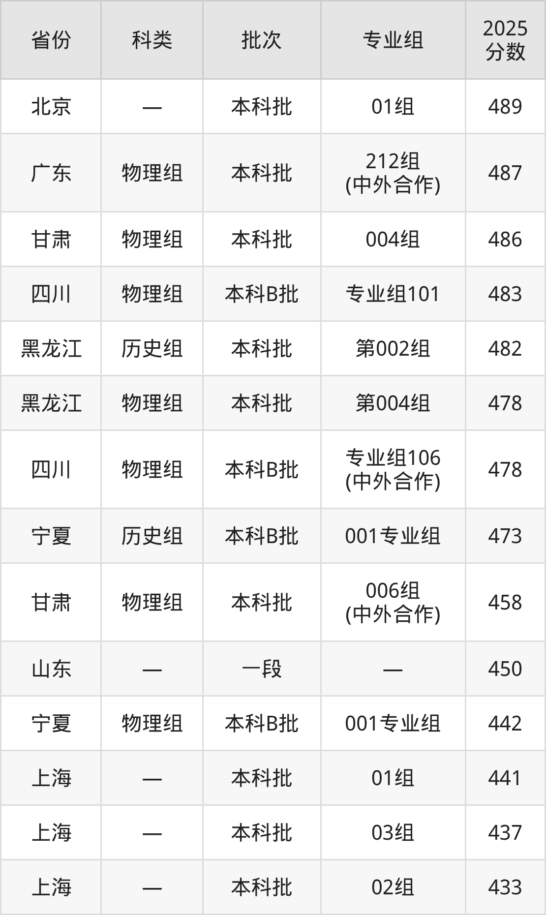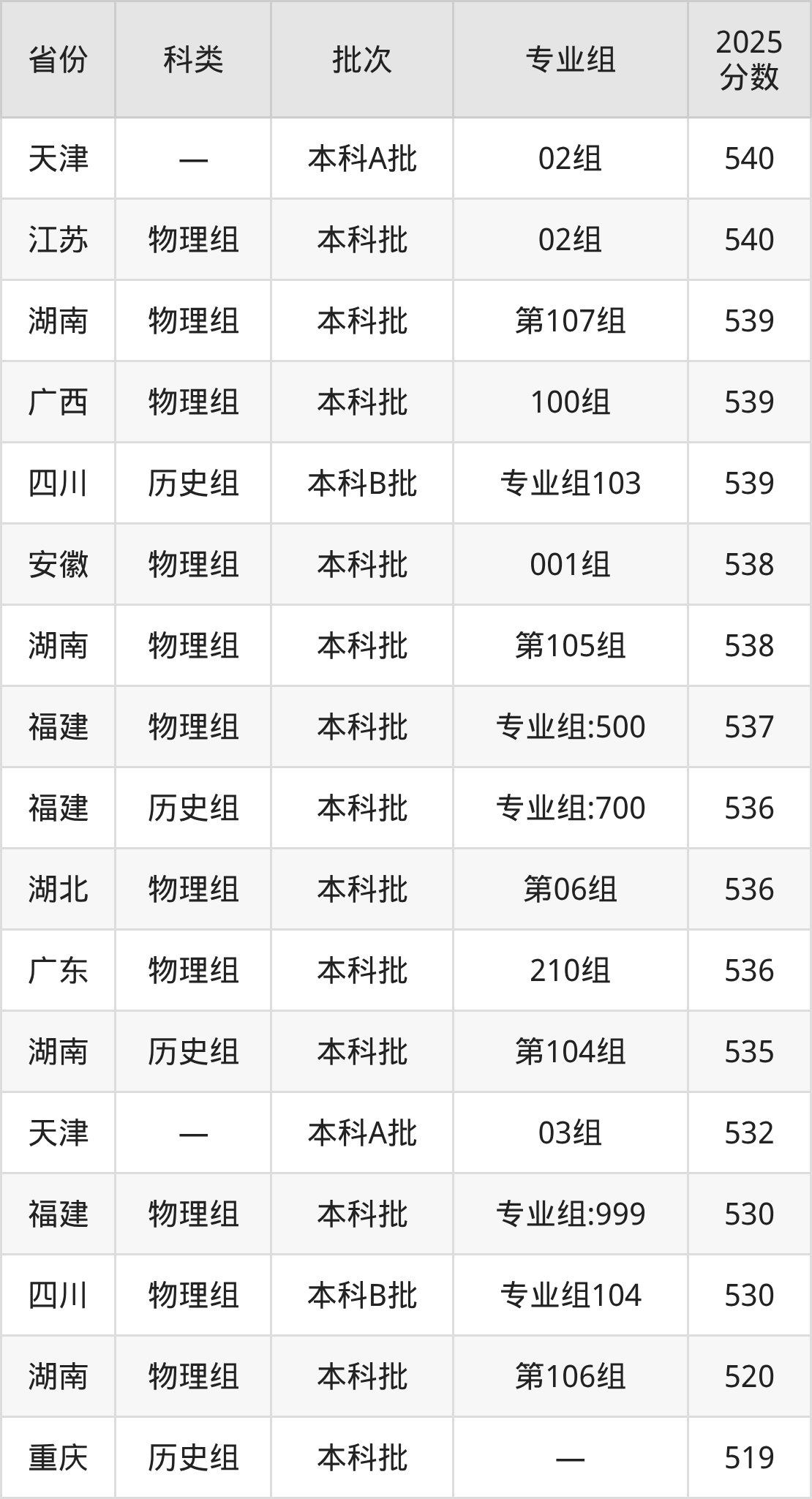 2025年西南科技大学在全国普通批次招生的录取分数范围位于433~611分之间,其中省内分数范围为478分~567分,历史组最低分专业组为“专业组103”,考生539分即可报考,物理组最低分专业组为“专业组106(中外合作)”,考生478分即可报考。
