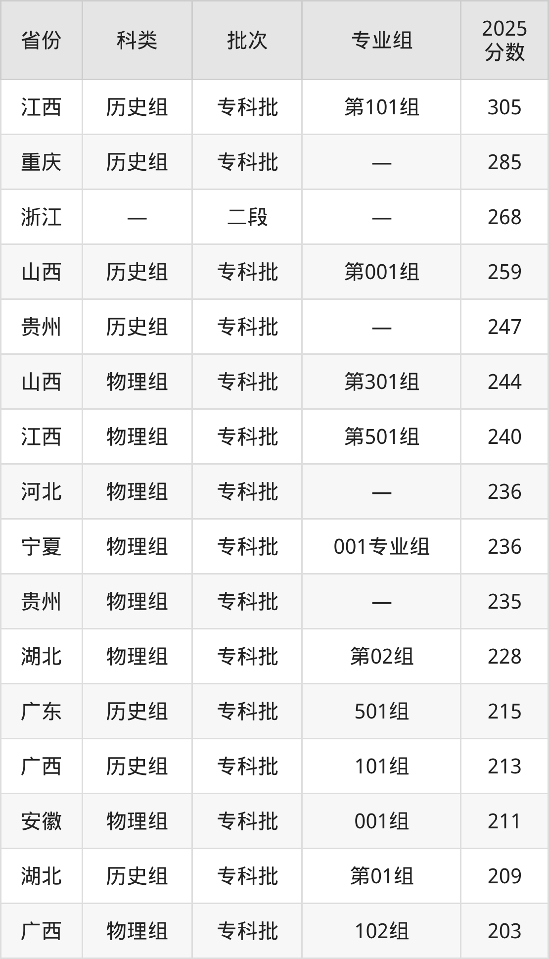 而江西地区历史组考生的分数门槛最高,2025年广东亚视演艺职业学院第101组在江西招生最低分为305分,考生至少要超专科线15分才有可能被录取。