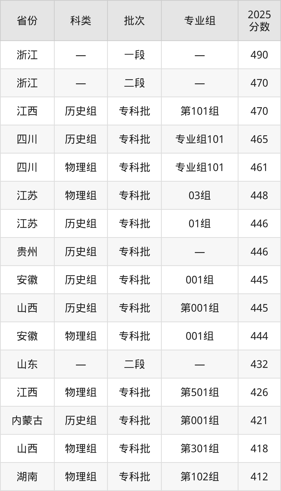 而浙江地区考生的分数门槛最高,2025年常州机电职业技术学院在浙江招生最低分为490分,考生至少要超一段线0分才有可能被录取。