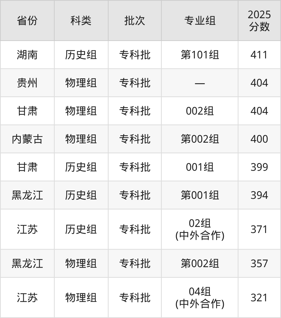 2025年常州机电职业技术学院在全国普通批次招生的录取分数范围位于321~490分之间,其中省内分数范围为321分~448分,物理组最低分专业组为“04组(中外合作)”,考生321分即可报考,历史组最低分专业组为“02组(中外合作)”,考生371分即可报考。