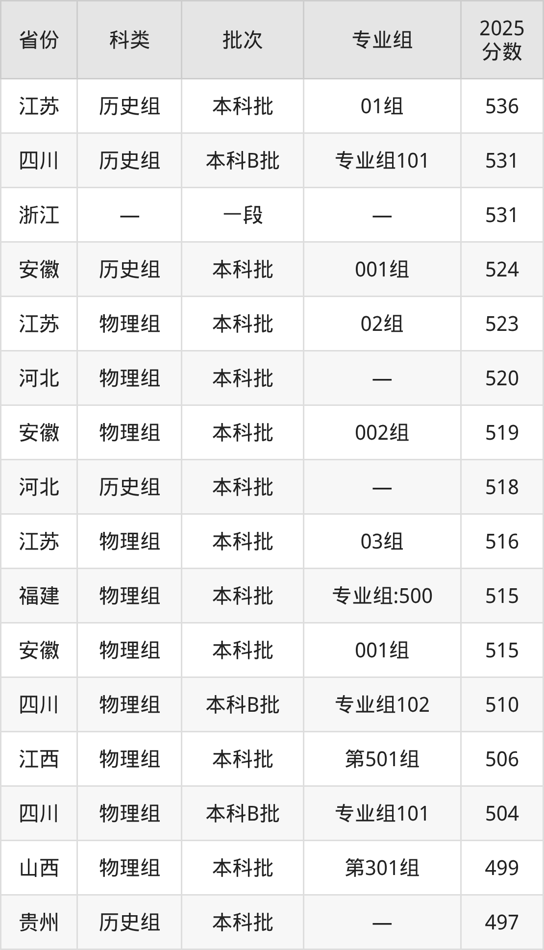 而江苏地区历史组考生的分数门槛最高,2025年绍兴理工学院01组在江苏招生最低分为536分,考生至少要超本科线54分才有可能被录取。