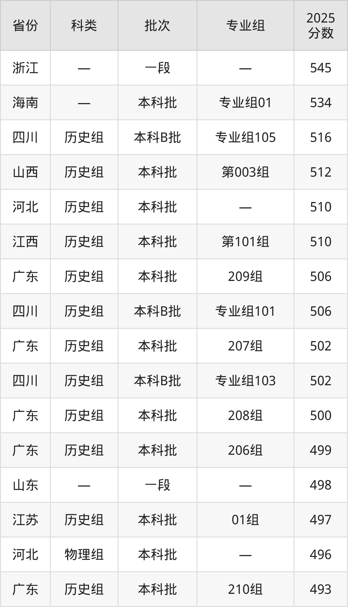 而浙江地区考生的分数门槛最高,2025年天津外国语大学滨海外事学院在浙江招生最低分为545分,考生至少要超一段线55分才有可能被录取。