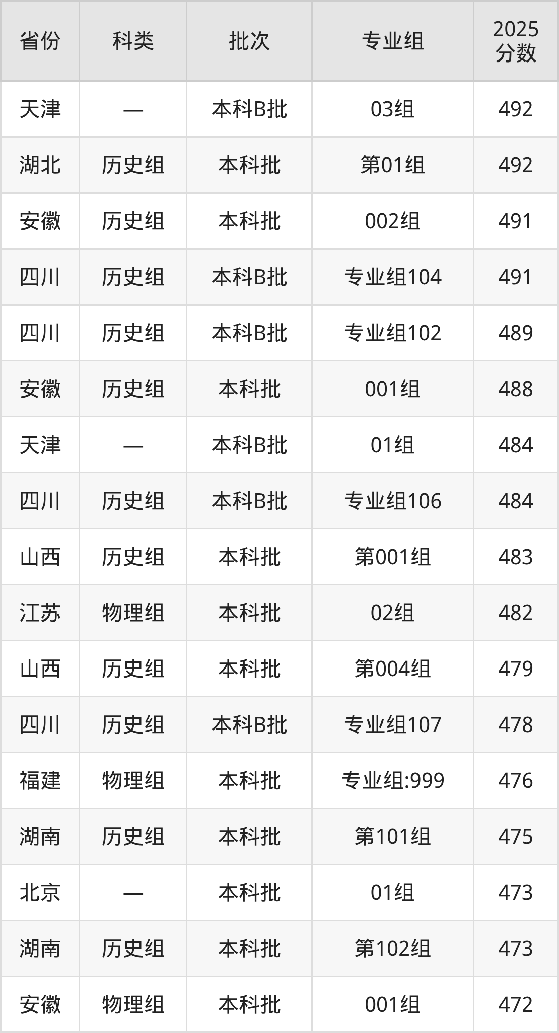 下面是天津外国语大学滨海外事学院2025年在全国各省的录取分数线一览表,供参考: