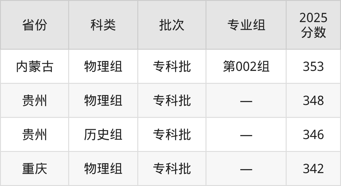 下面是重庆水利电力职业技术学院2025年在全国各省的录取分数线一览表,供参考: