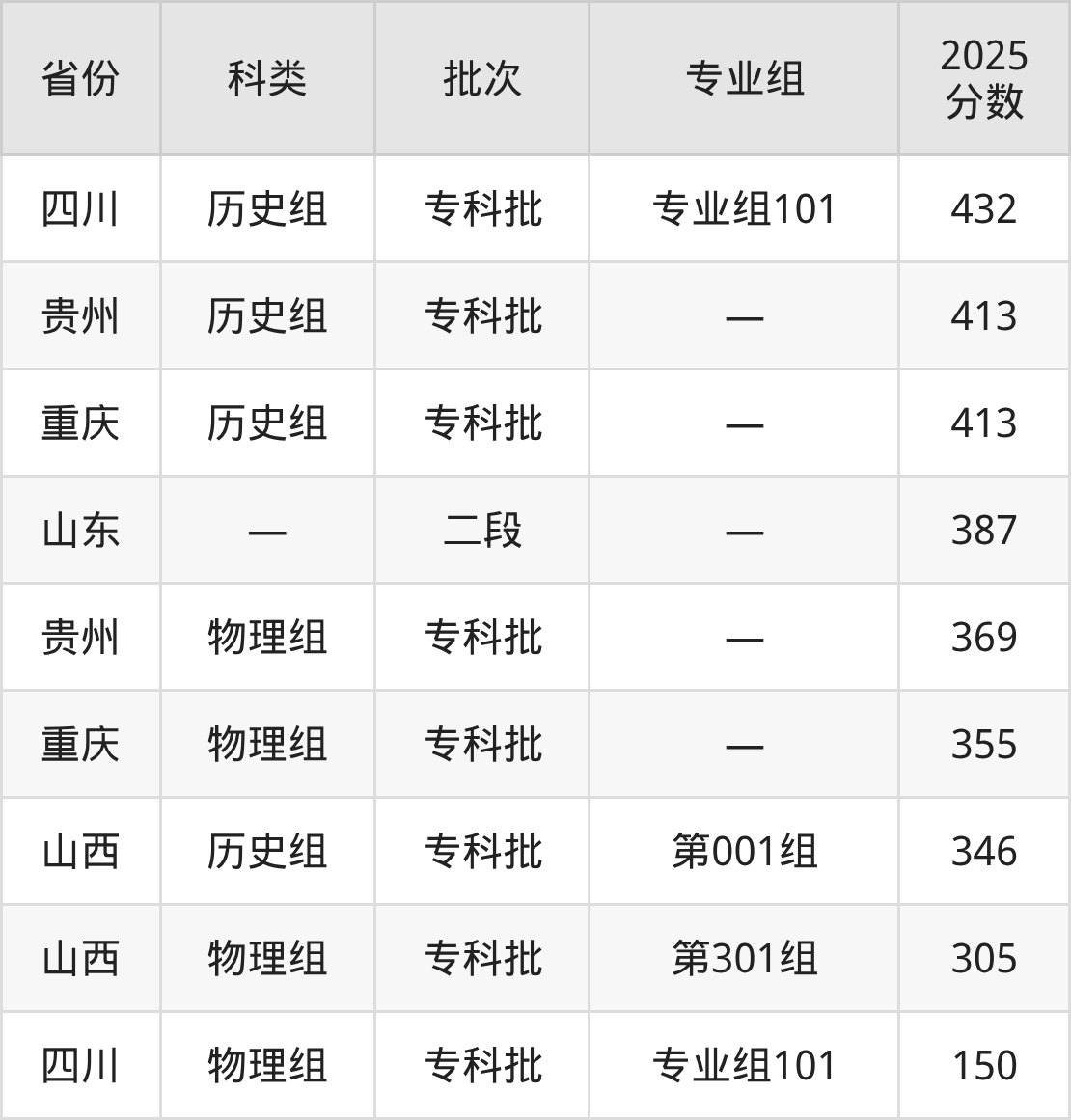 下面是保山中医药高等专科学校2025年在全国各省的录取分数线一览表,供参考: