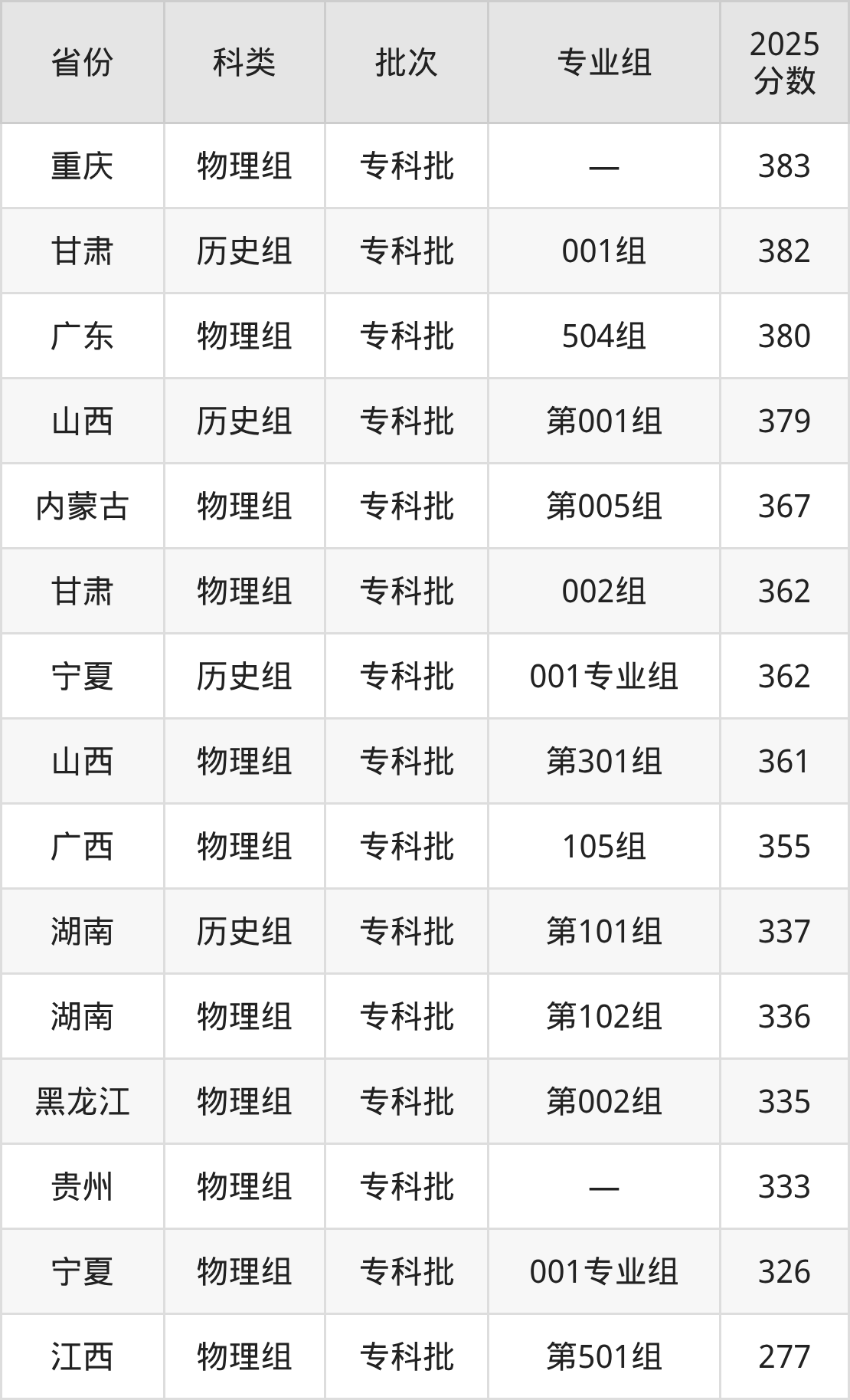 下面是濮阳医学高等专科学校2025年在全国各省的录取分数线一览表,供参考: