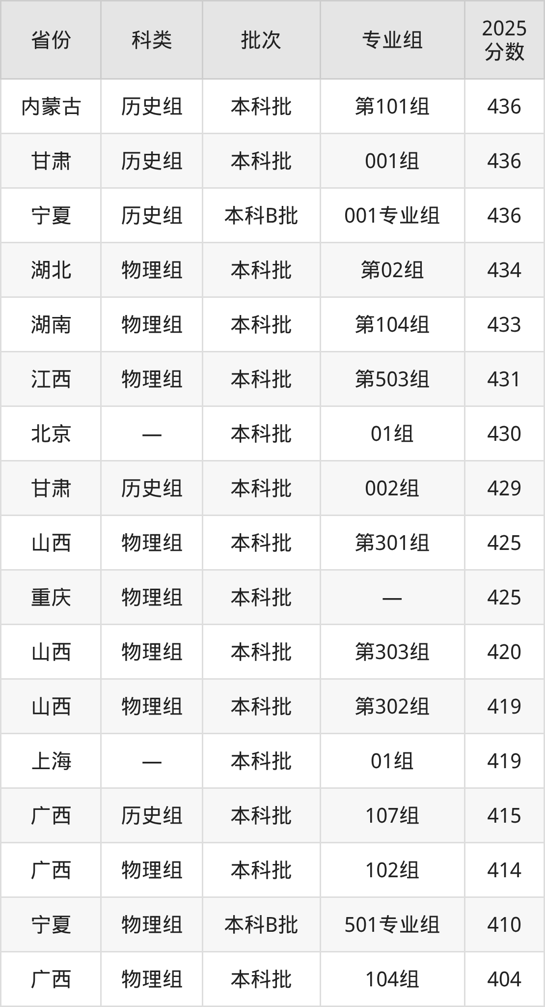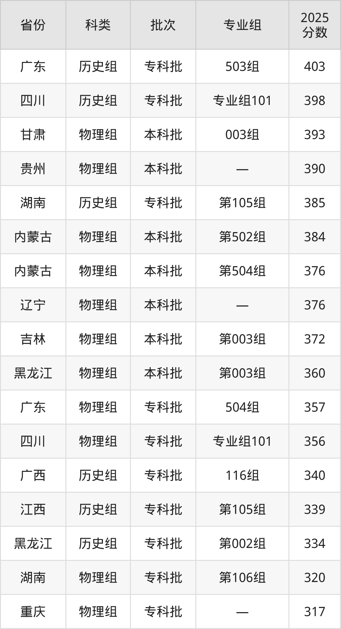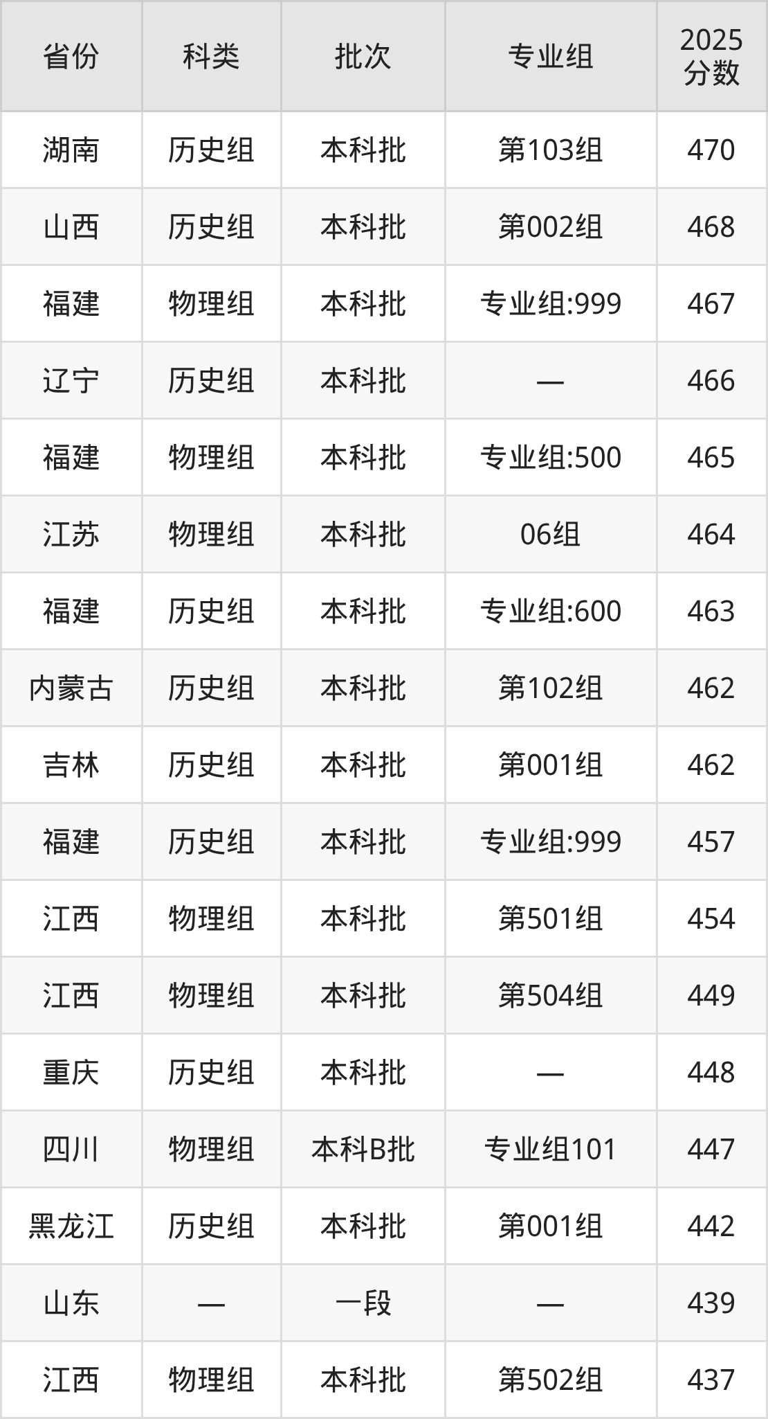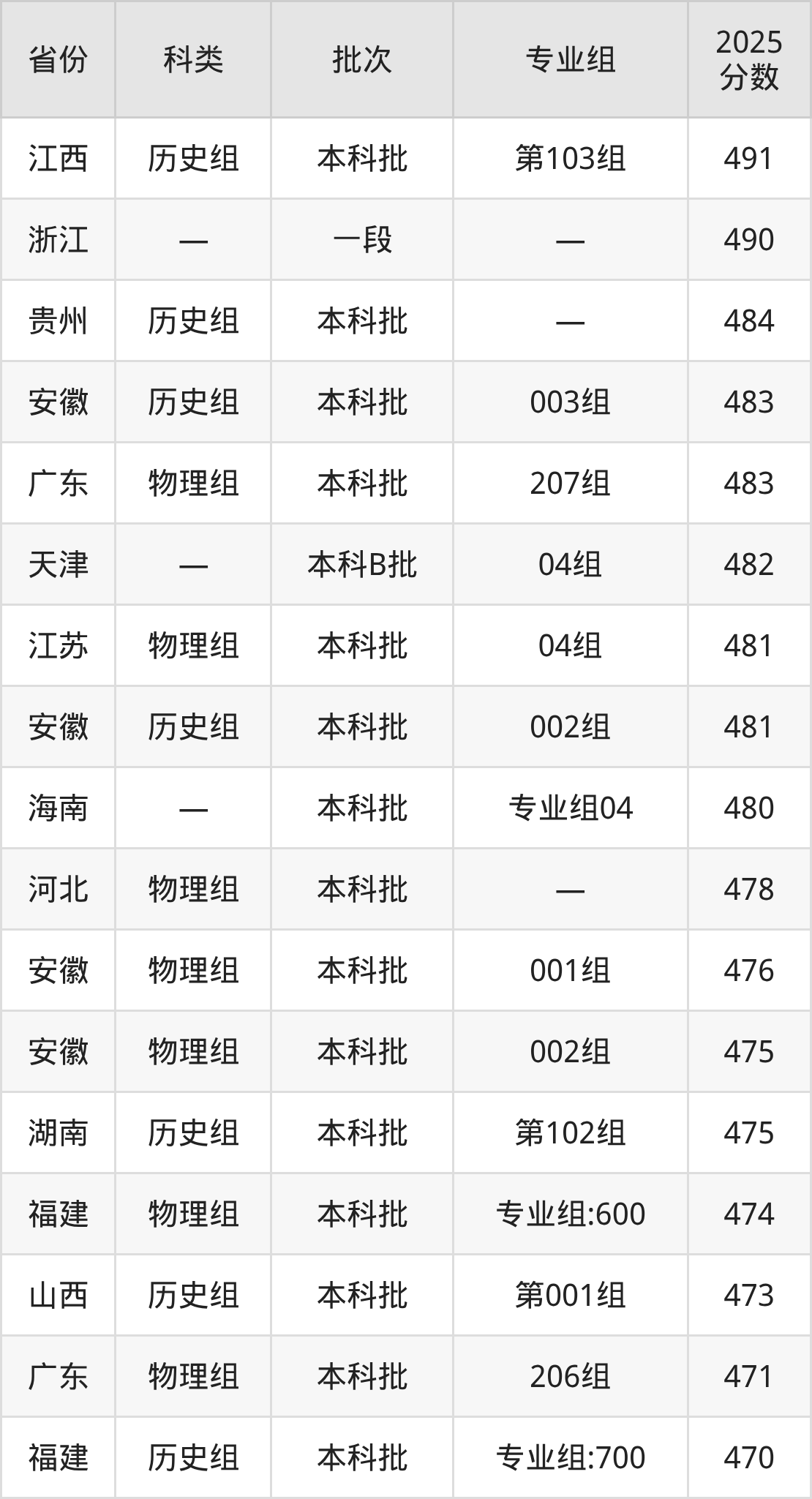 下面是南昌工学院2025年在全国各省的录取分数线一览表,供参考: