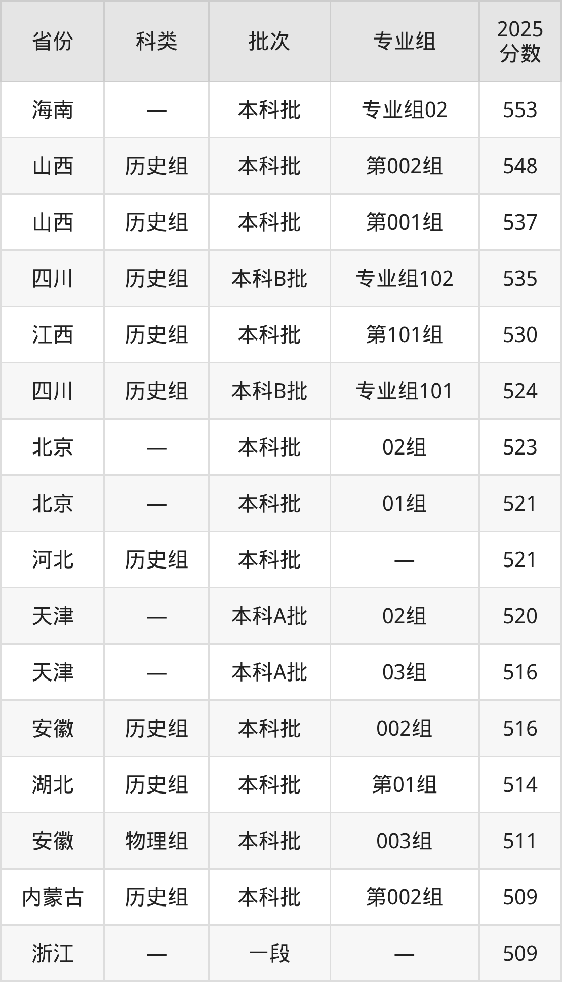 而海南地区考生的分数门槛最高,2025年廊坊师范学院专业组02在海南招生最低分为553分,考生至少要超本科线73分才有可能被录取。