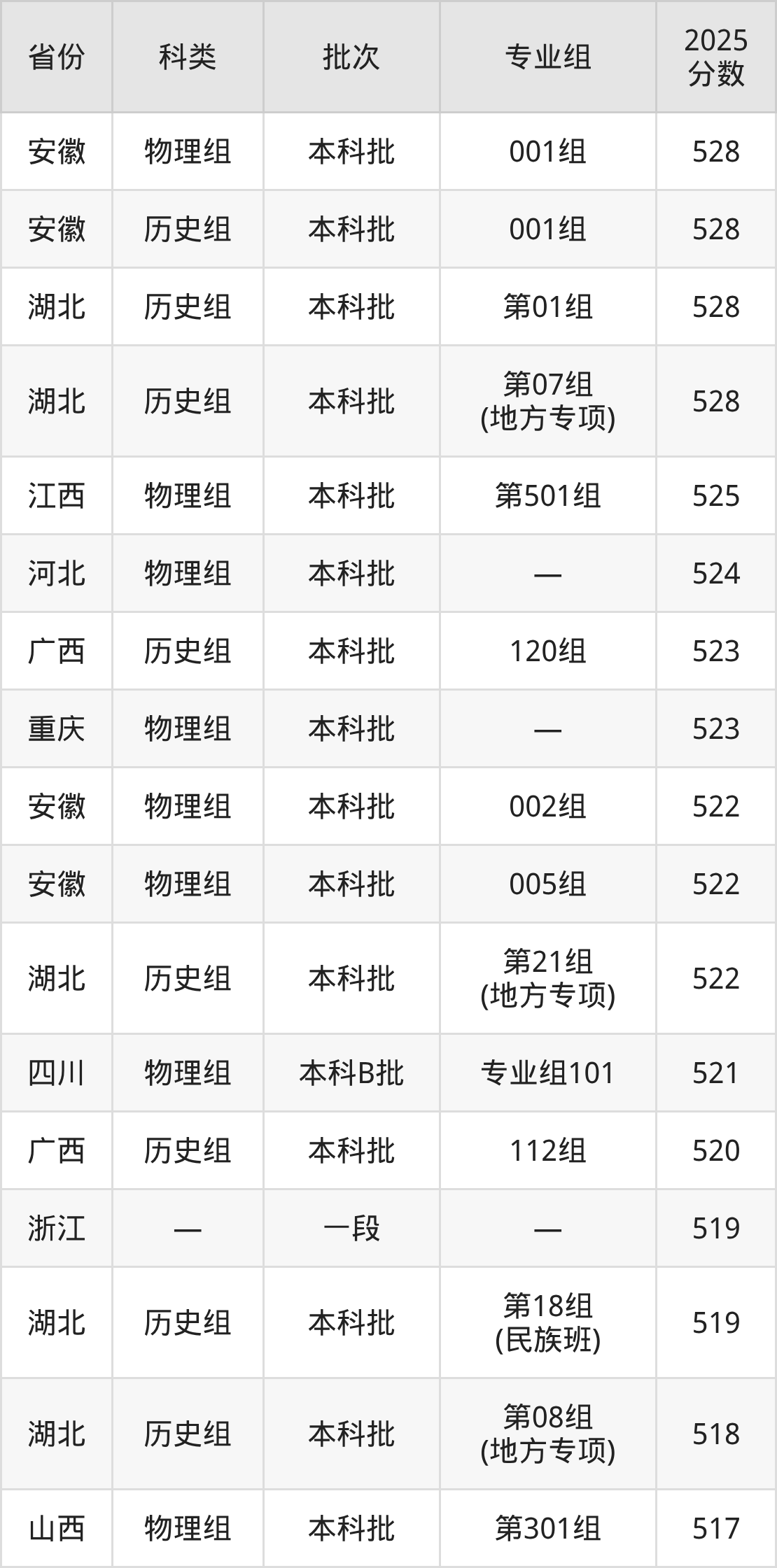 而海南地区考生的分数门槛最高,2025年湖北民族大学专业组01在海南招生最低分为611分,考生至少要超本科线131分才有可能被录取。