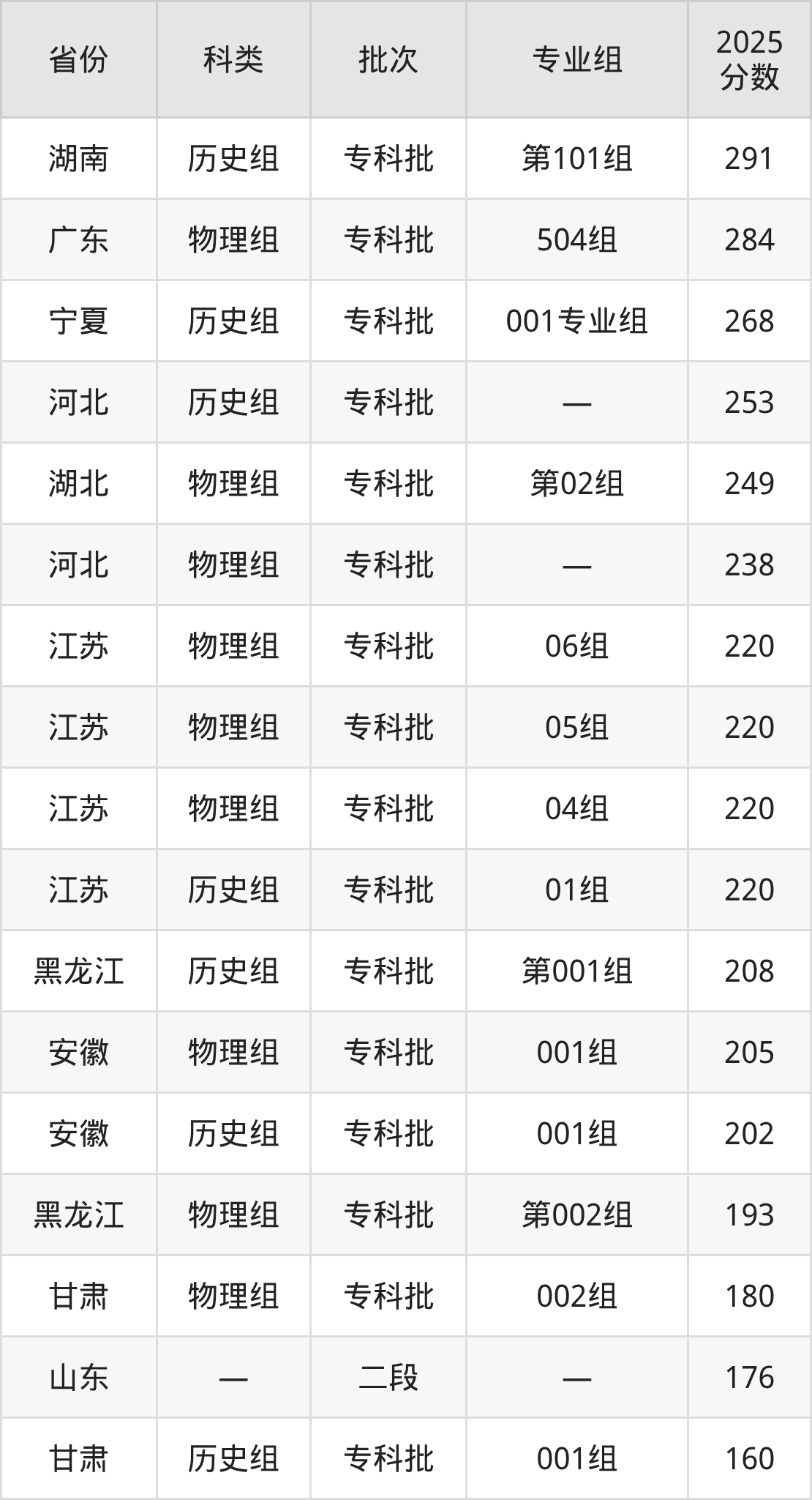 下面是九州职业技术学院2025年在全国各省的录取分数线一览表,供参考:
