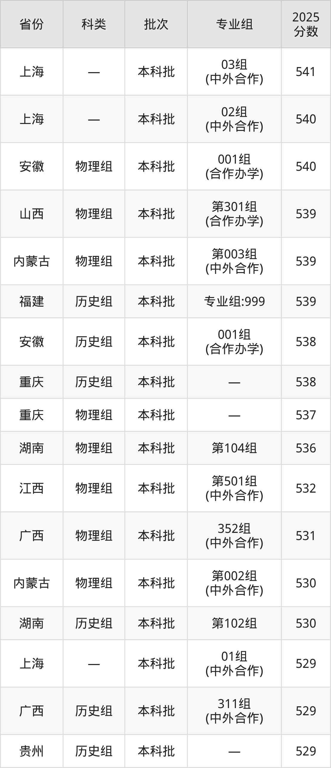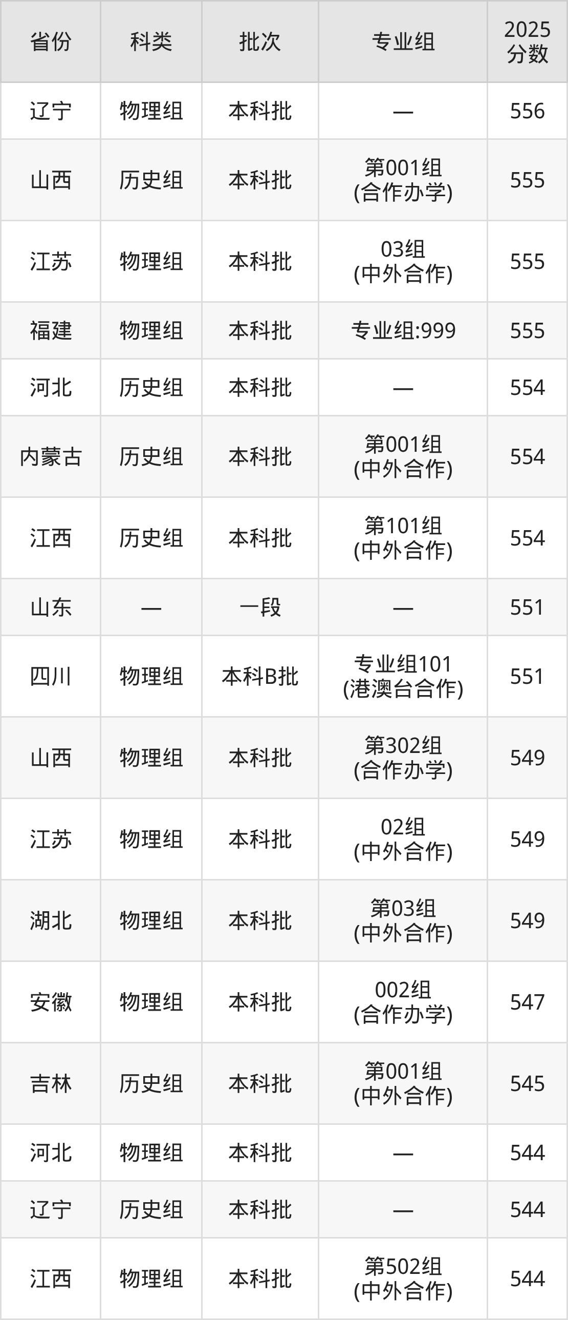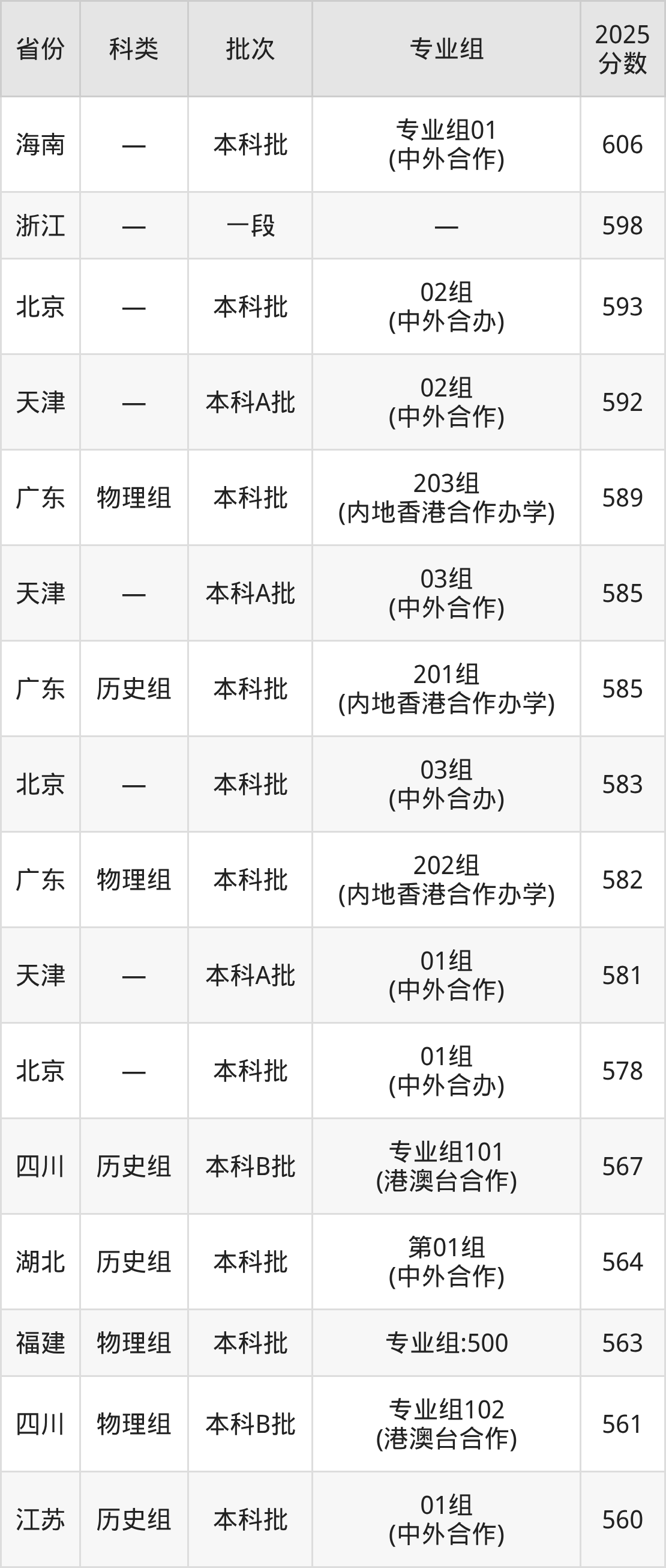 北师香港浸会大学2026年录取分数需在高招结束官方数据公布后更新,2026届有意向报考该校的同学,可以在填报志愿时参考北师香港浸会大学2025年录取分数线: