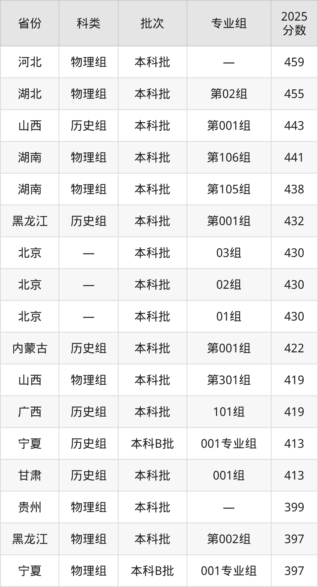 下面是北京金融科技学院2025年在全国各省的录取分数线一览表,供参考:
