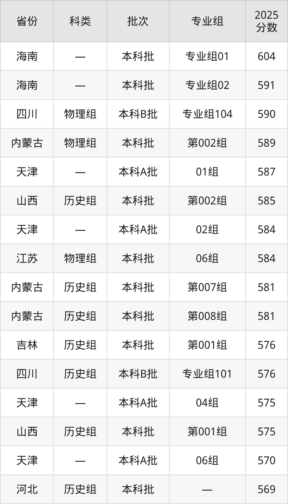 而海南地区考生的分数门槛最高,2025年石家庄铁道大学专业组01在海南招生最低分为604分,考生至少要超本科线124分才有可能被录取。