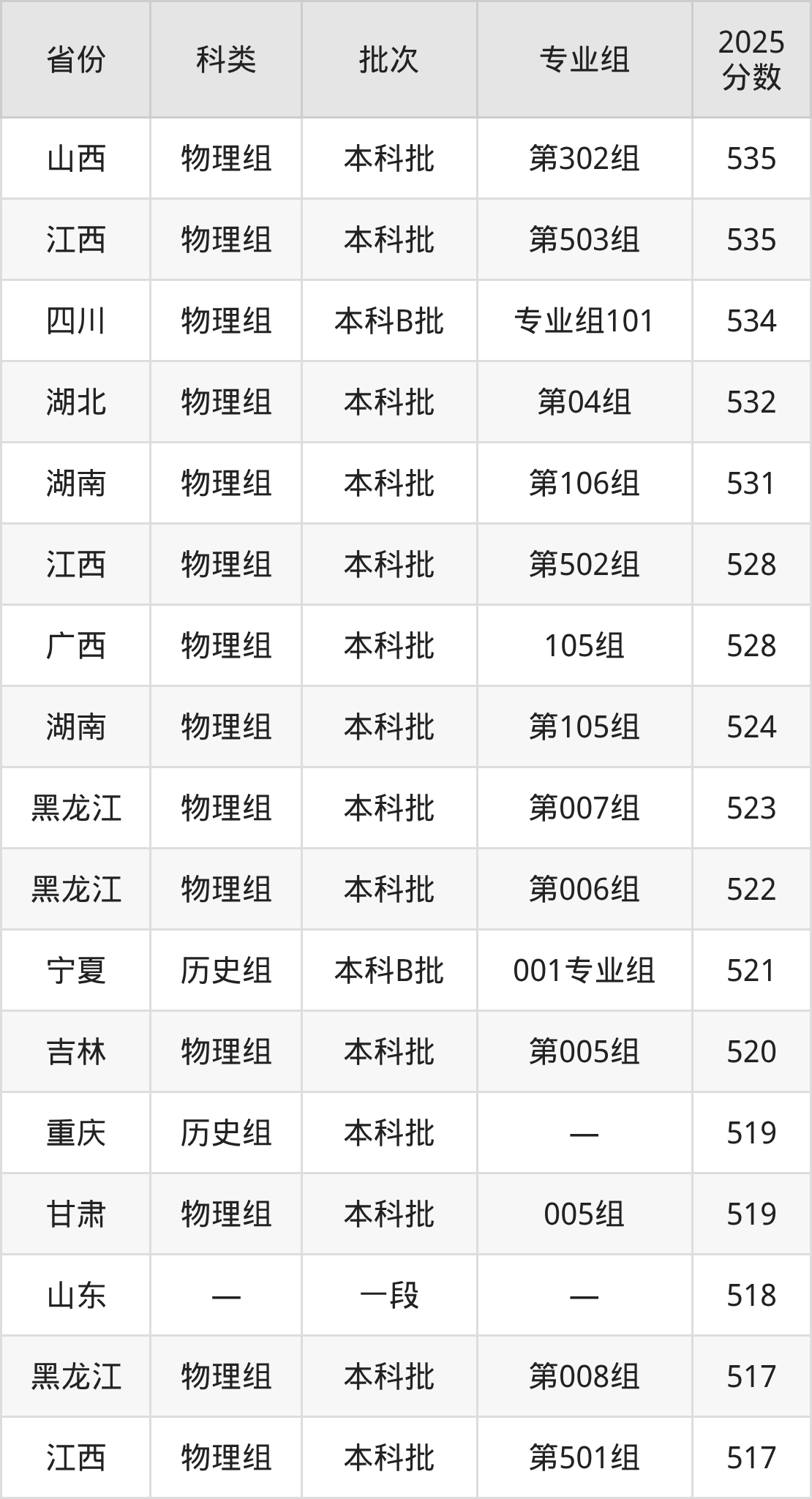 下面是石家庄铁道大学2025年在全国各省的录取分数线一览表,供参考: