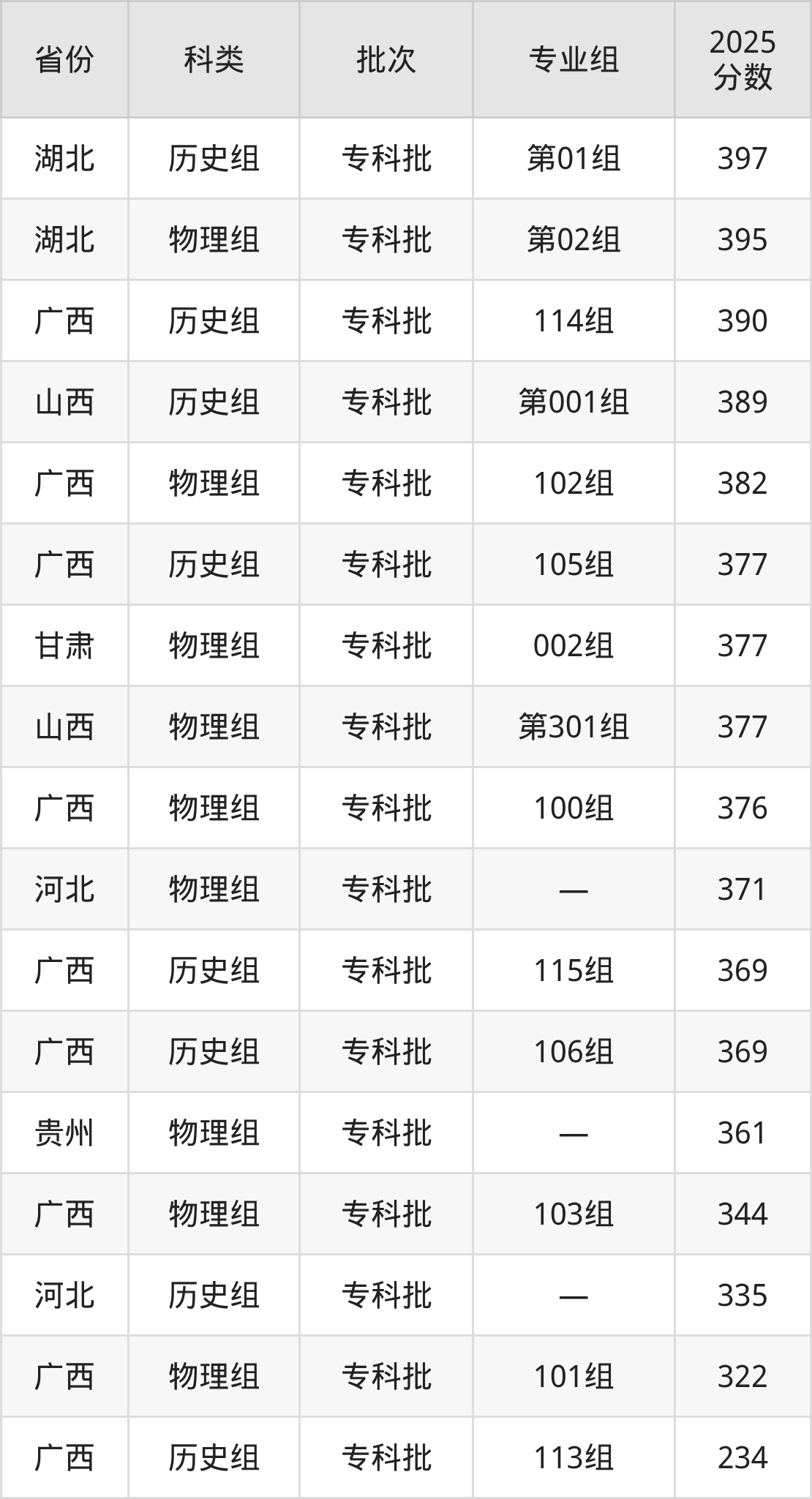 下面是曲靖健康医学院2025年在全国各省的录取分数线一览表,供参考: