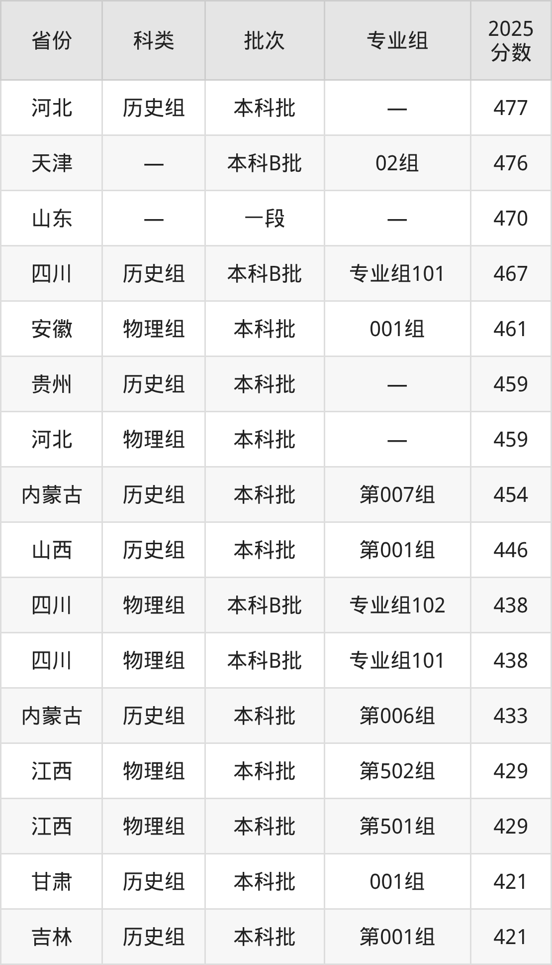 而河北地区历史组考生的分数门槛最高,2025年哈尔滨剑桥学院在河北招生最低分为477分,考生至少要超本科线0分才有可能被录取。