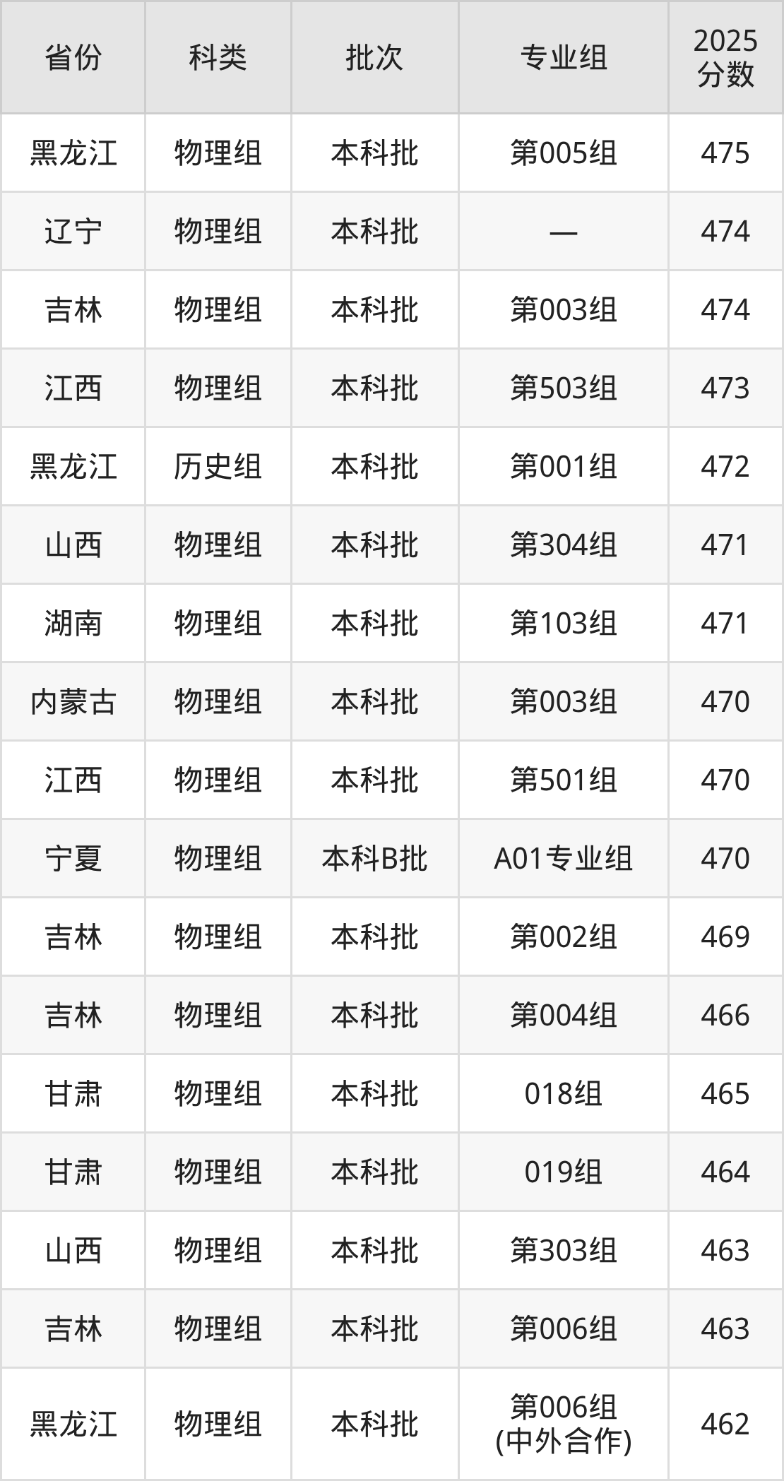 2025年齐齐哈尔医学院在全国普通批次招生的录取分数范围位于420~567分之间,其中省内分数范围为446分~567分,物理组最低分专业组为“第003组”,考生446分即可报考,历史组最低分专业组为“第001组”,考生472分即可报考。