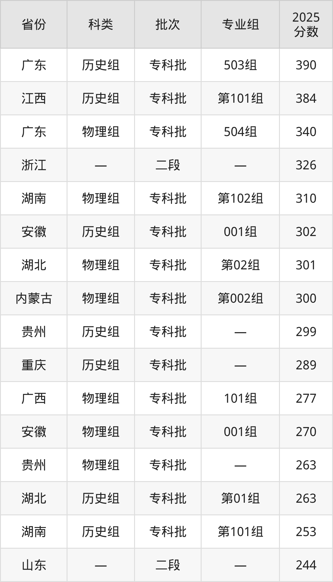 而广东地区历史组考生的分数门槛最高,2025年重庆海联职业技术学院503组在广东招生最低分为390分,考生至少要超专科线175分才有可能被录取。