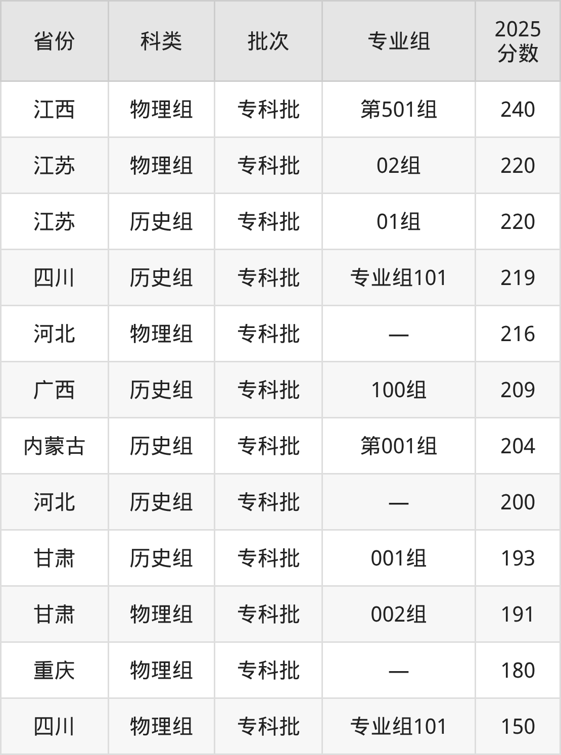 下面是重庆海联职业技术学院2025年在全国各省的录取分数线一览表,供参考: