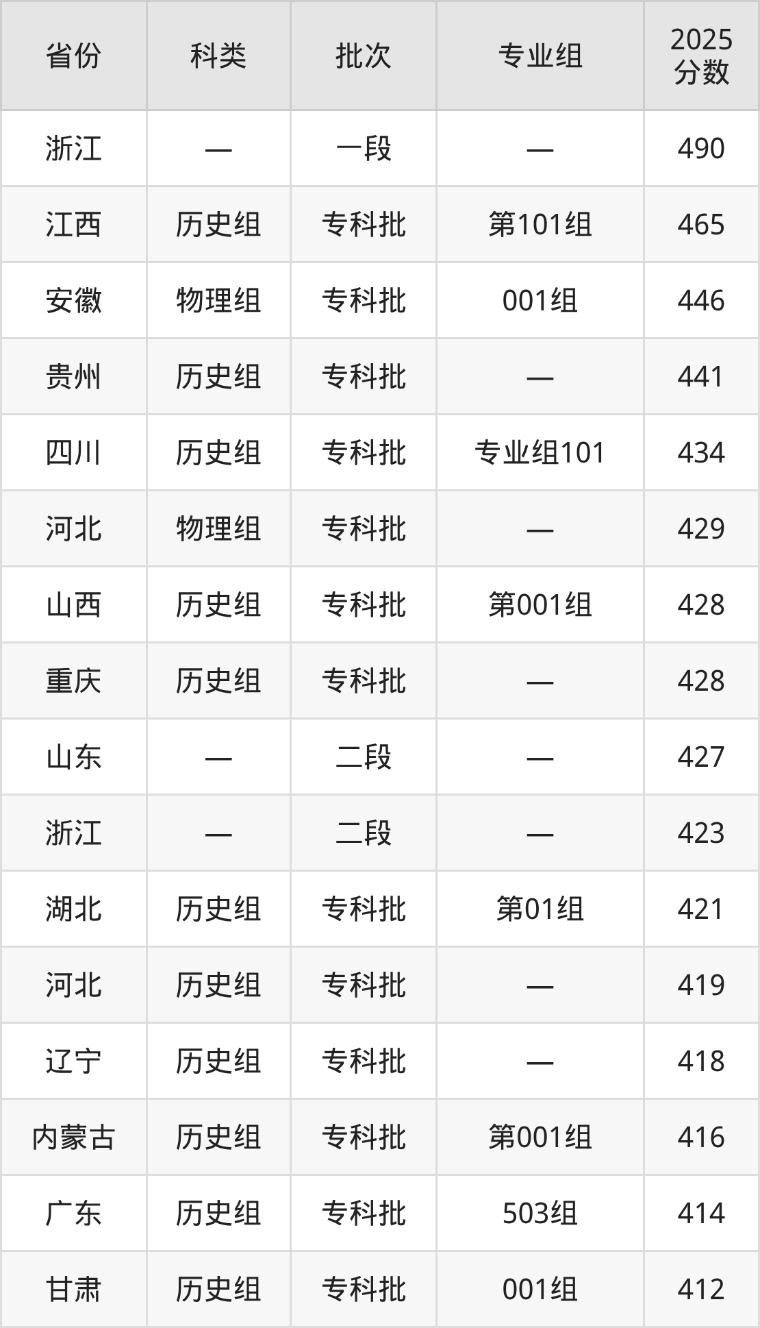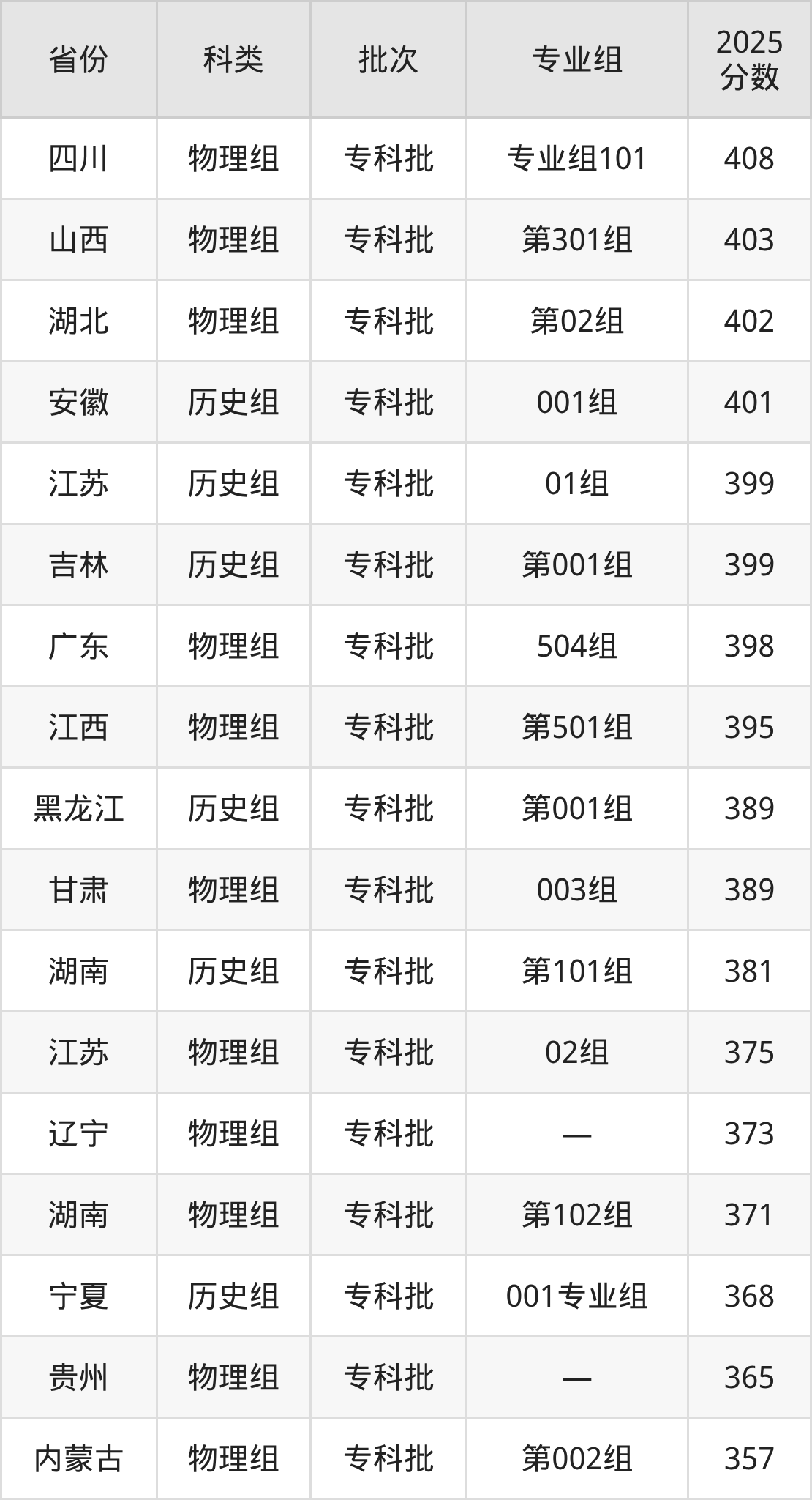 而浙江地区考生的分数门槛最高,2025年陕西交通职业技术学院在浙江招生最低分为490分,考生至少要超一段线0分才有可能被录取。