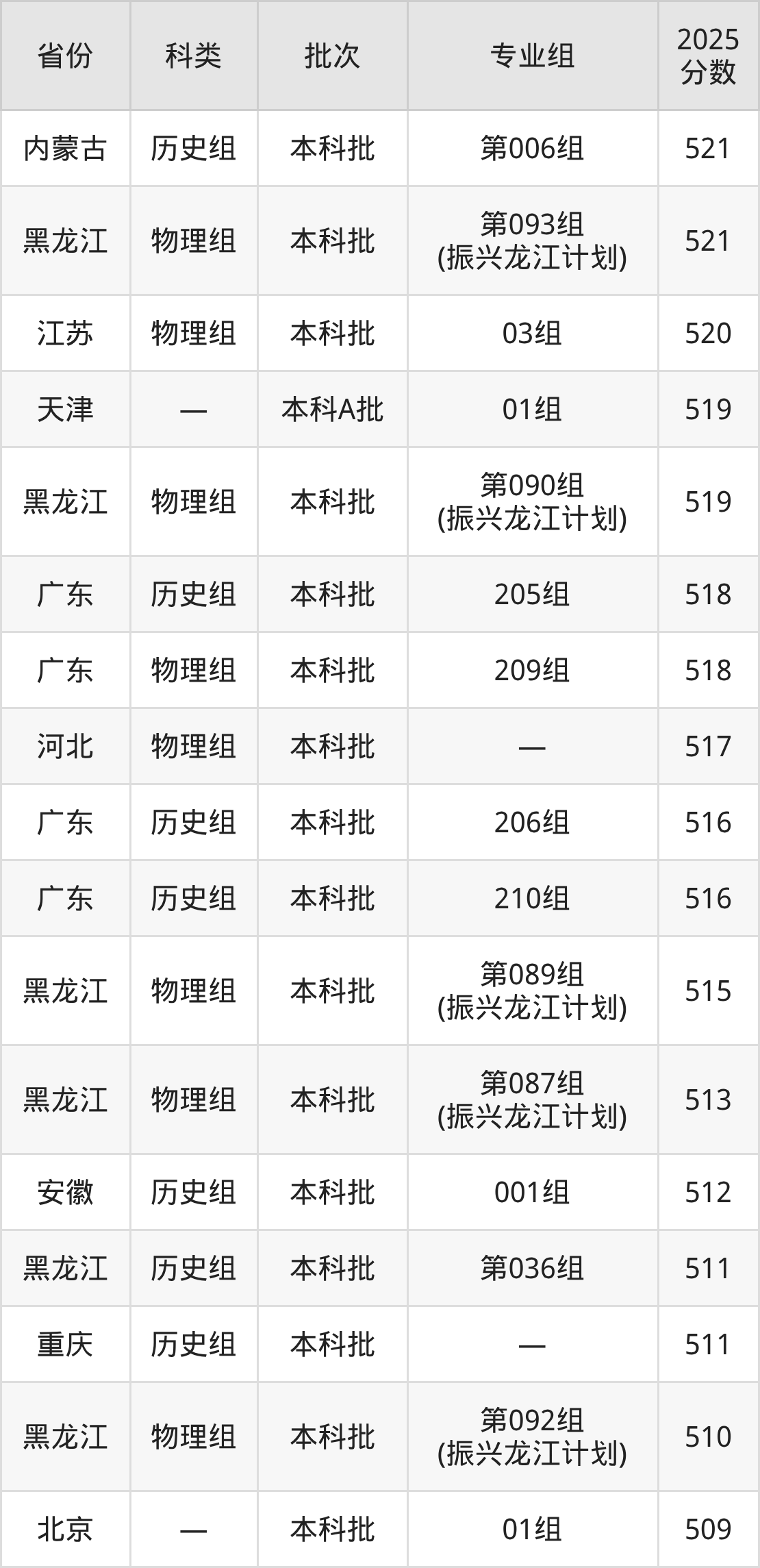 而海南地区考生的分数门槛最高,2025年齐齐哈尔大学专业组03在海南招生最低分为588分,考生至少要超本科线108分才有可能被录取。