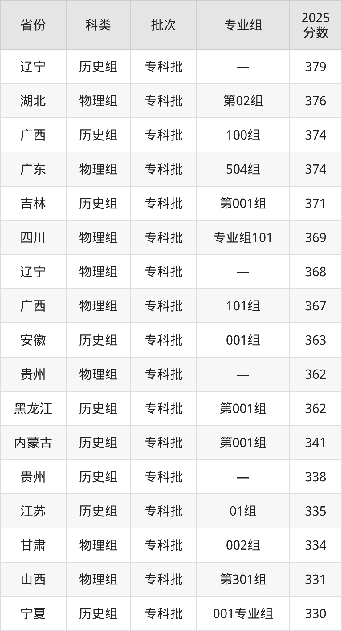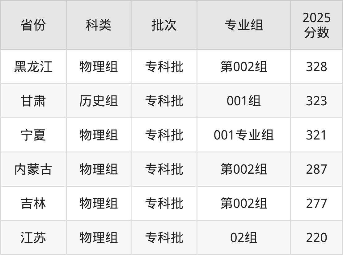 下面是湖南工程职业技术学院2025年在全国各省的录取分数线一览表,供参考: