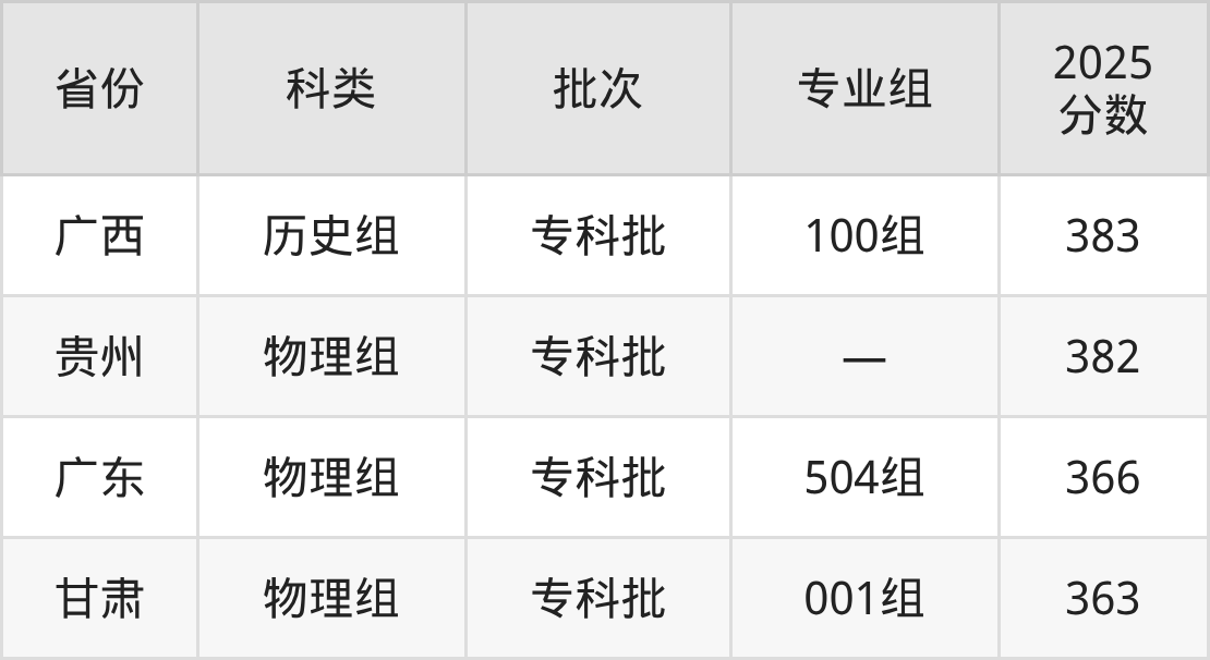 下面是贵州轻工职业大学2025年在全国各省的录取分数线一览表,供参考: