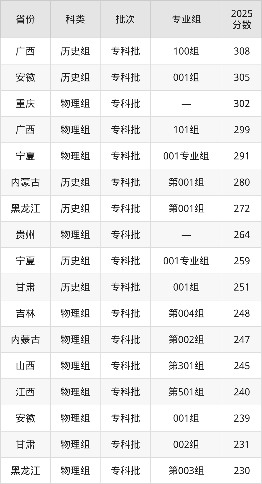 下面是齐齐哈尔高等师范专科学校2025年在全国各省的录取分数线一览表,供参考: