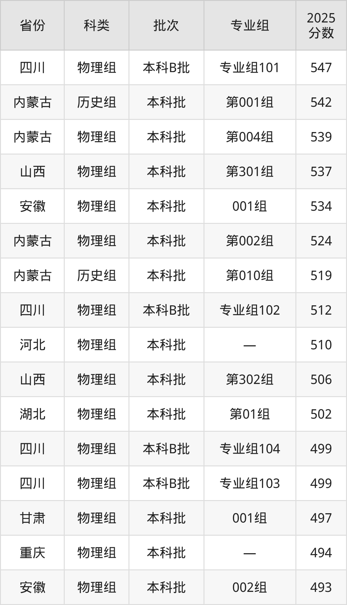 下面是内蒙古科技大学包头医学院2025年在全国各省的录取分数线一览表,供参考: