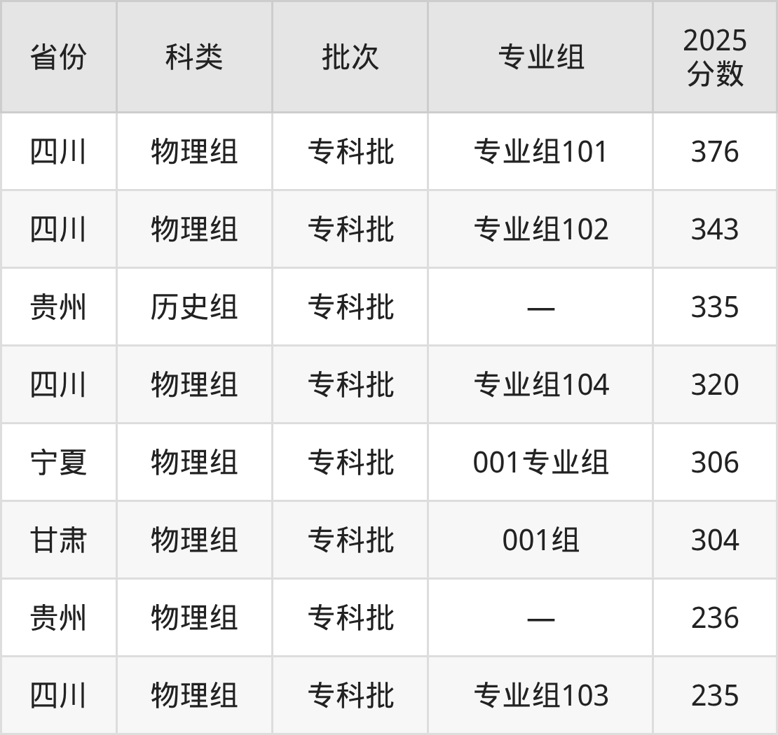 下面是青海柴达木职业技术学院2025年在全国各省的录取分数线一览表,供参考: