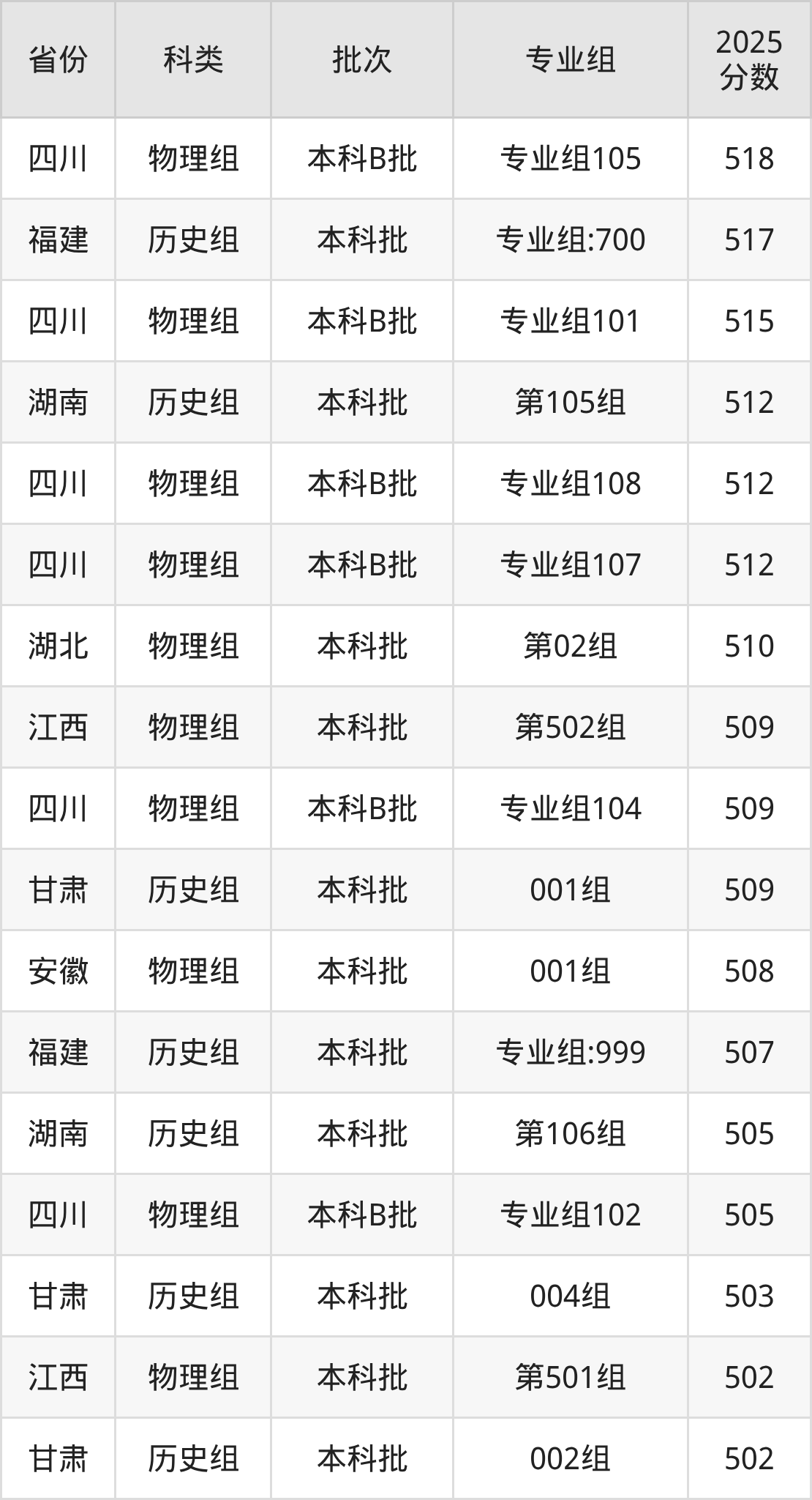 下面是遵义师范学院2025年在全国各省的录取分数线一览表,供参考: