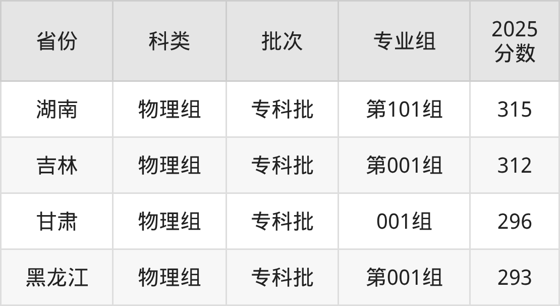 厦门软件职业技术学院在省外招生的最低分为293分,其中黑龙江地区物理组考生上厦门软件职业技术学院的分数门槛最低,考生成绩超专科线133分(293分)可上。其次是甘肃物理组考生,上厦门软件职业技术学院至少要超专科线116分(296分)。