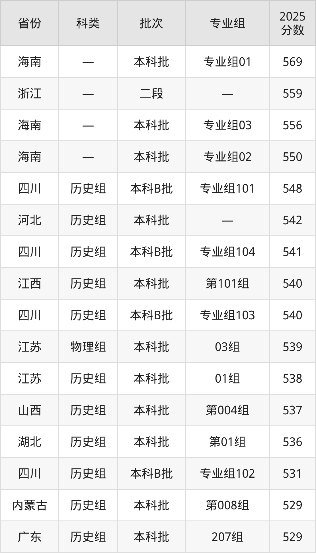 下面是兰州财经大学2025年在全国各省的录取分数线一览表,供参考: