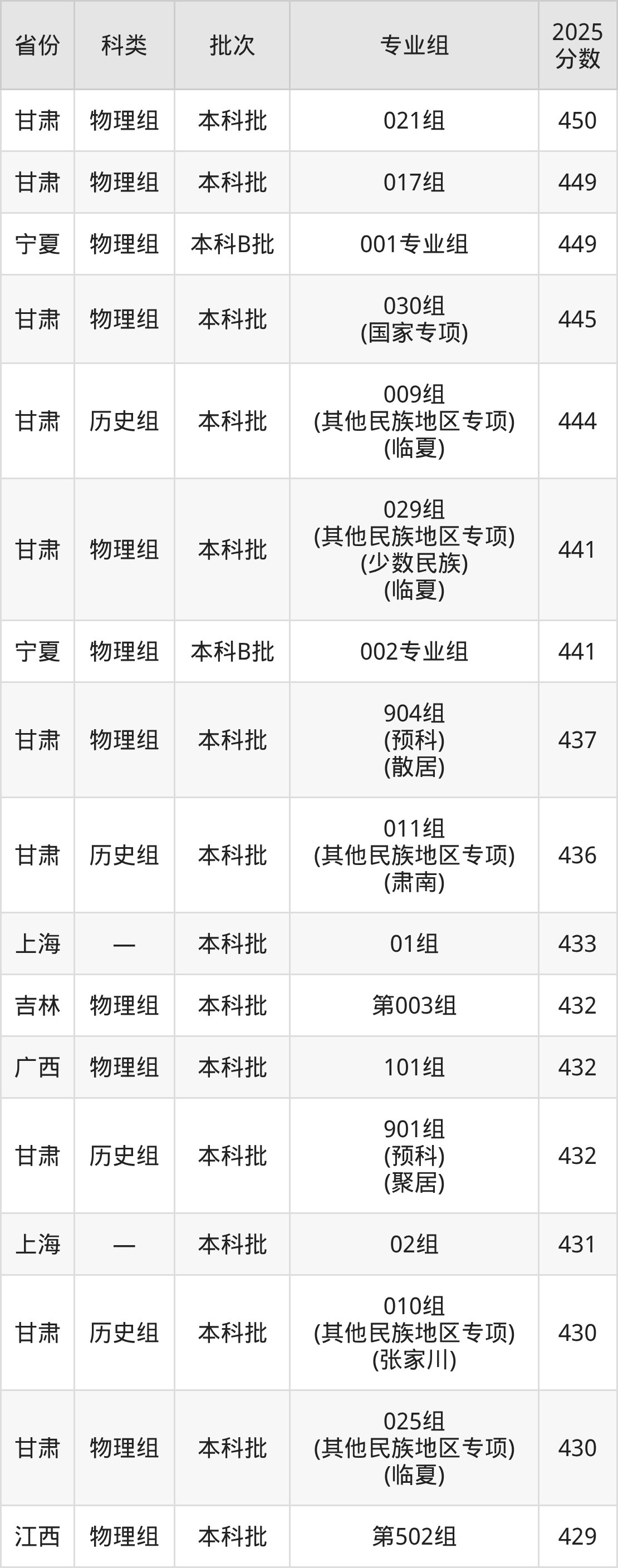 兰州财经大学2026年录取分数需在高招结束官方数据公布后更新,2026届有意向报考该校的同学,可以在填报志愿时参考兰州财经大学2025年录取分数线: