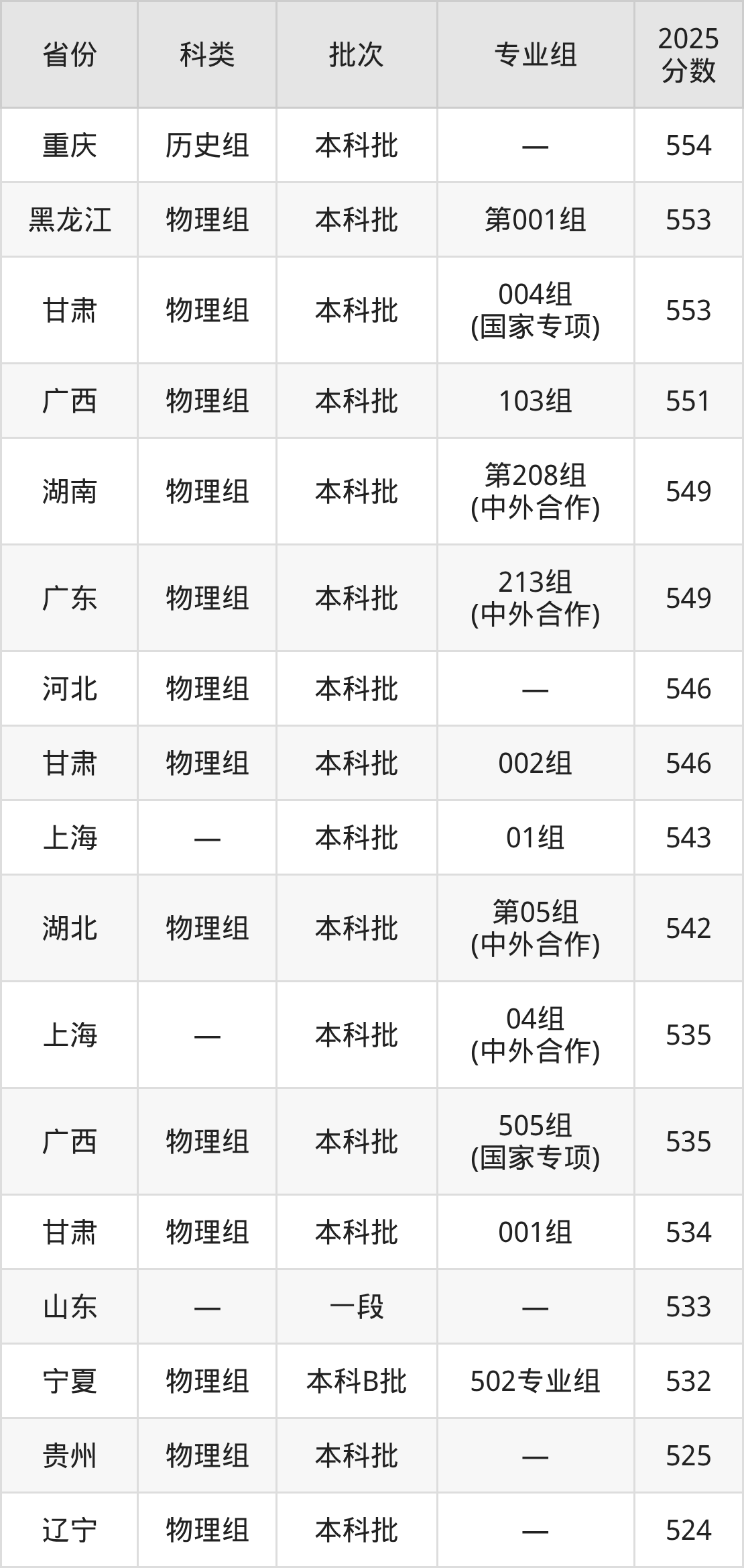下面是浙江工业大学2025年在全国各省的录取分数线一览表,供参考: