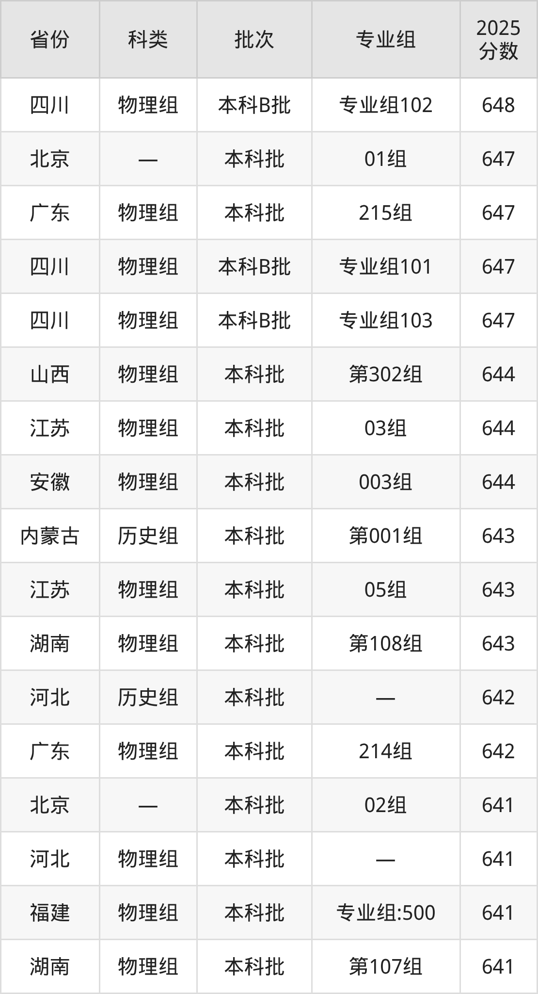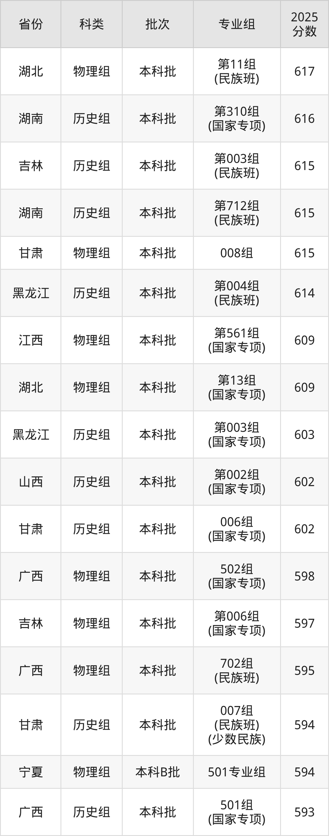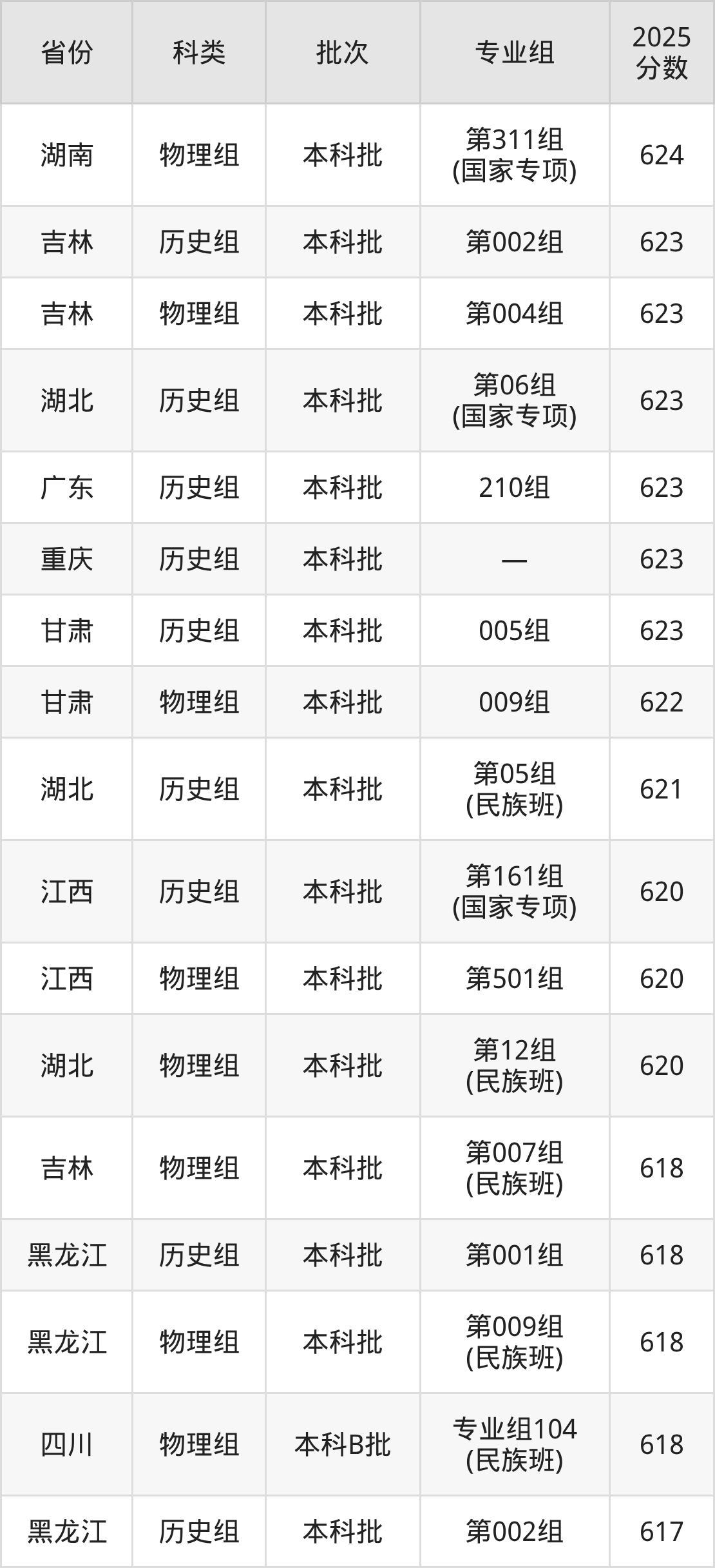 中山大学2026年录取分数需在高招结束官方数据公布后更新,2026届有意向报考该校的同学,可以在填报志愿时参考中山大学2025年录取分数线:
