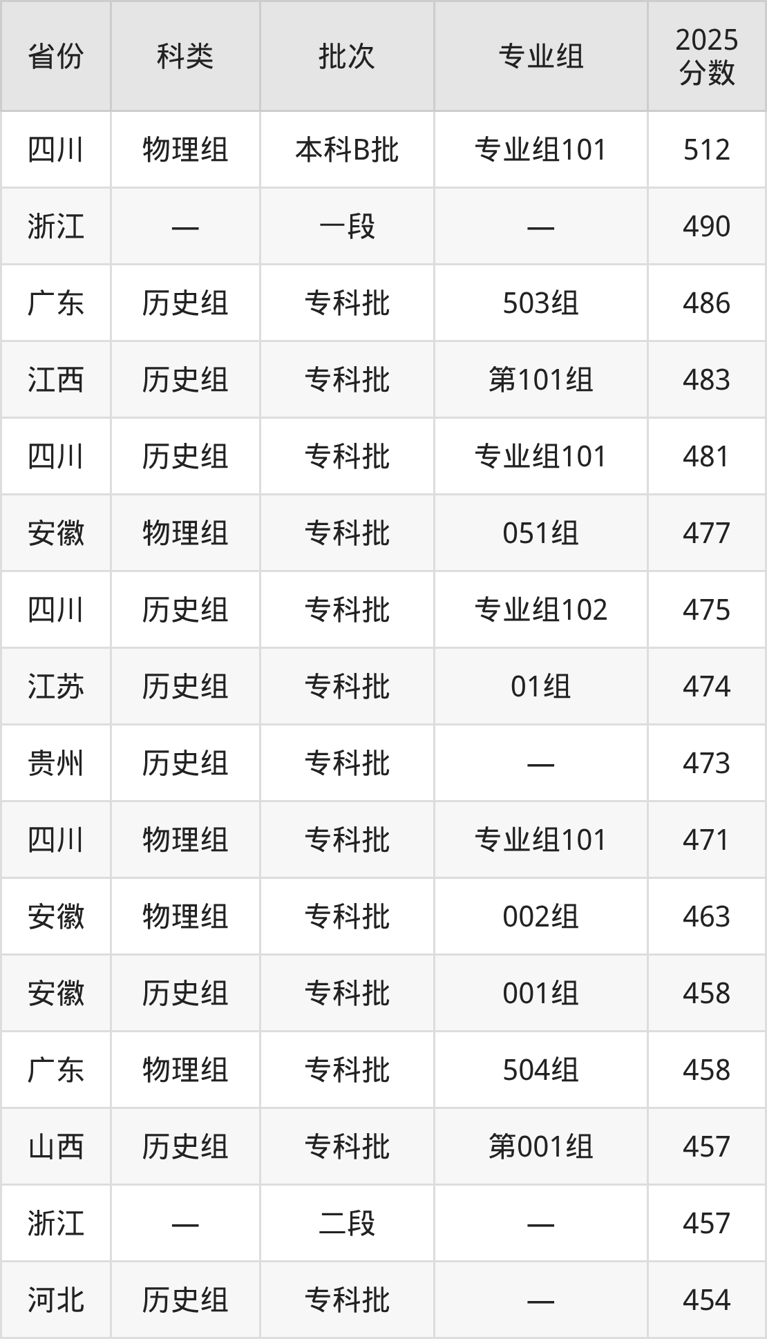 而浙江地区考生的分数门槛最高,2025年成都航空职业技术大学在浙江招生最低分为490分,考生至少要超一段线0分才有可能被录取。