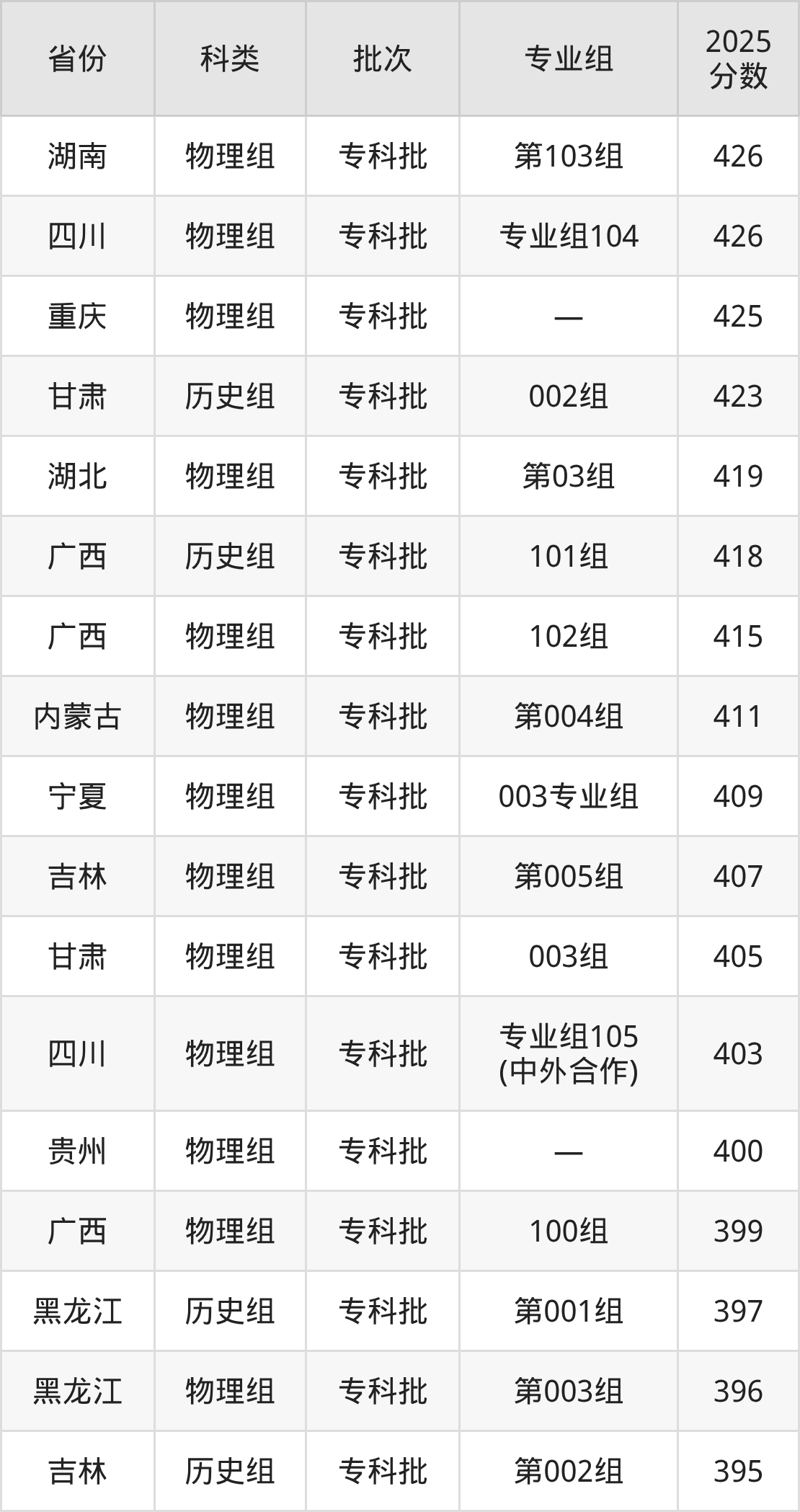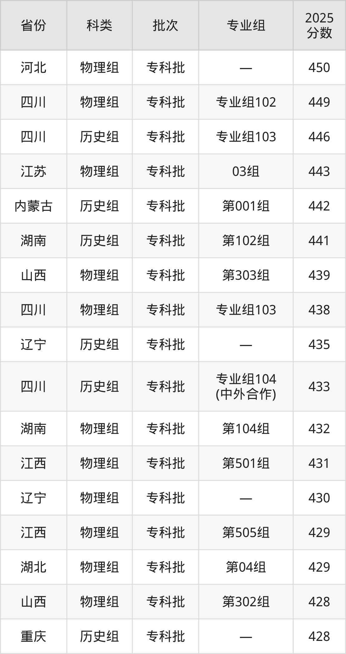 下面是成都航空职业技术大学2025年在全国各省的录取分数线一览表,供参考: