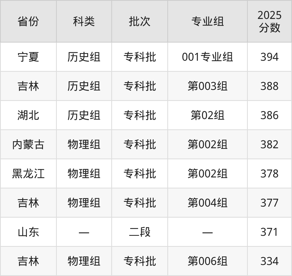 成都航空职业技术大学在省外招生的最低分为334分,其中吉林地区物理组考生上成都航空职业技术大学的分数门槛最低,考生成绩超专科线174分(334分)可上。其次是山东考生,上成都航空职业技术大学至少要超二段线221分(371分)。