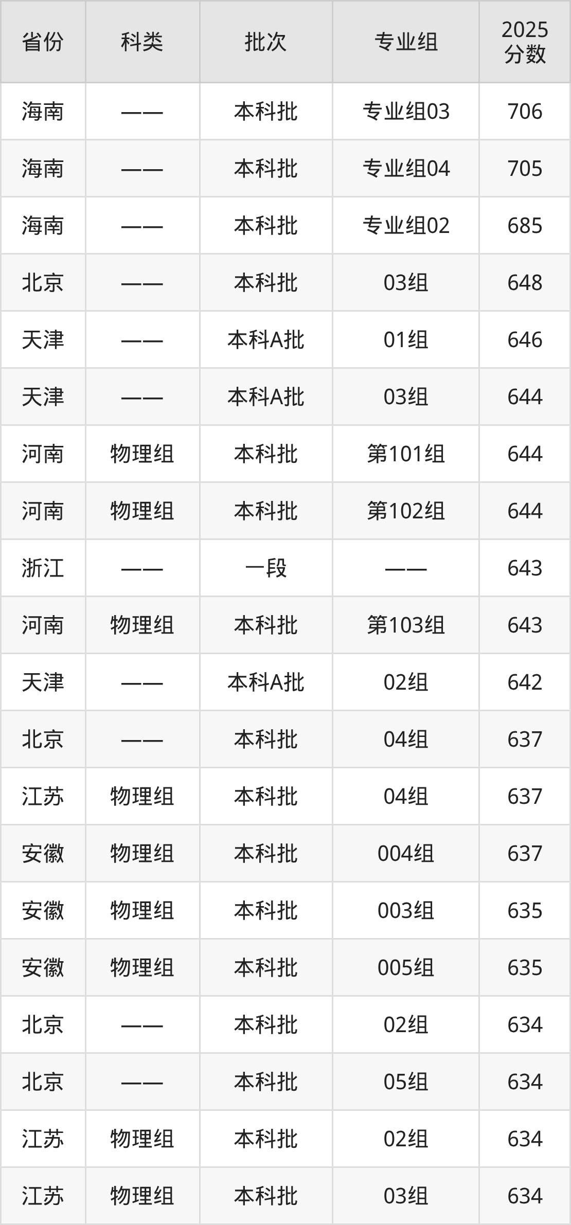 而海南地区考生的分数门槛最高,2025年北京科技大学专业组03在海南招生最低分为706分,考生至少要超本科线226分才有可能被录取。