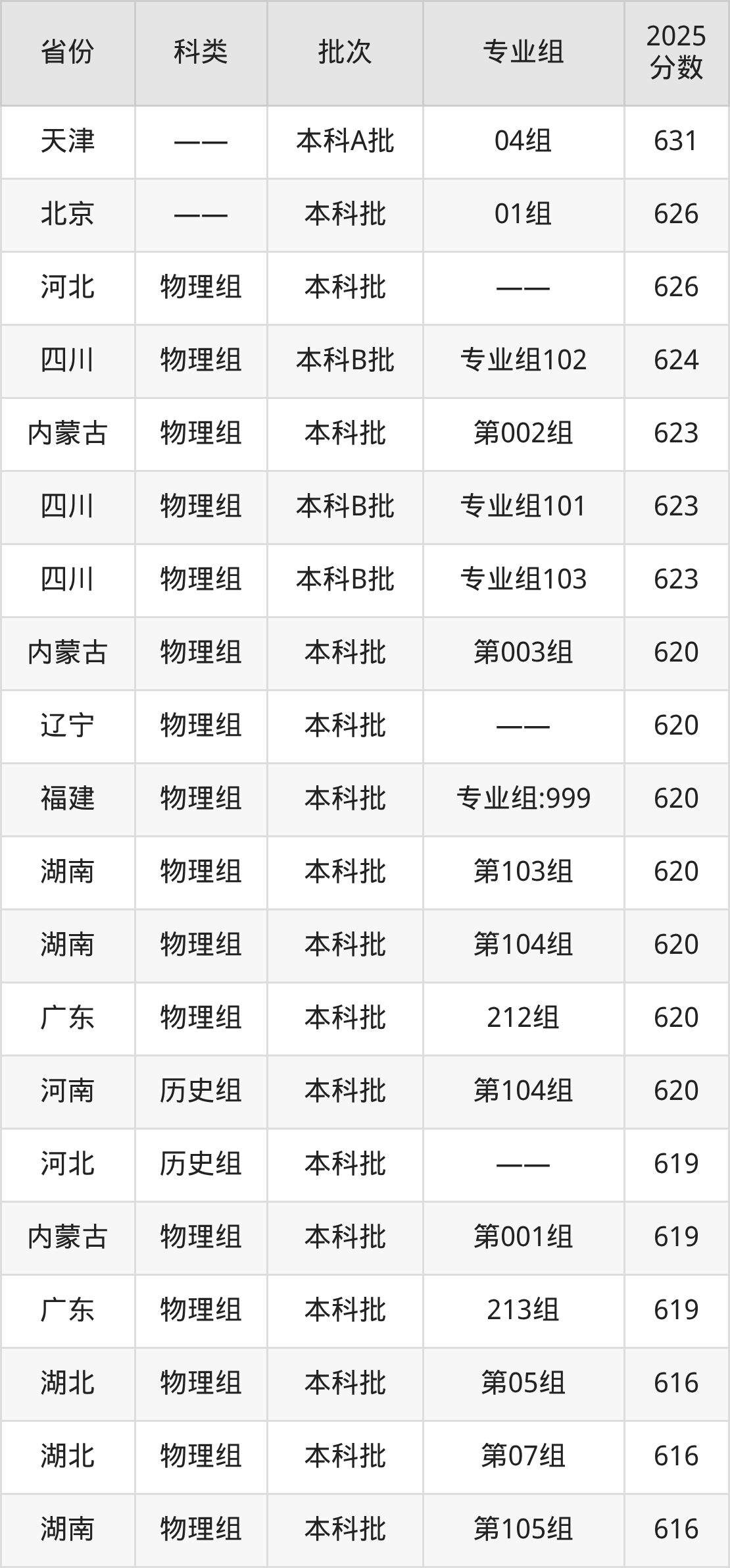 下面是北京科技大学2025年在全国各省的录取分数线一览表,供参考: