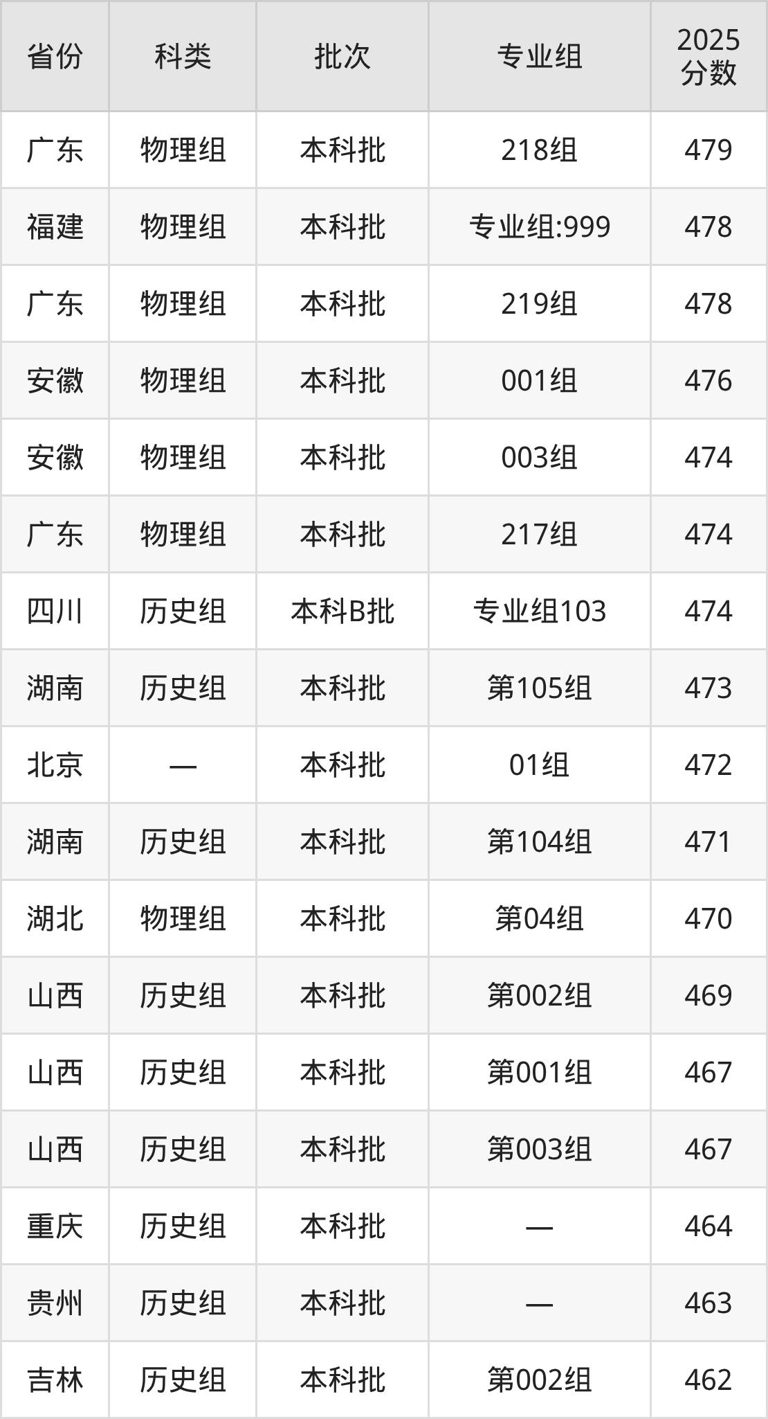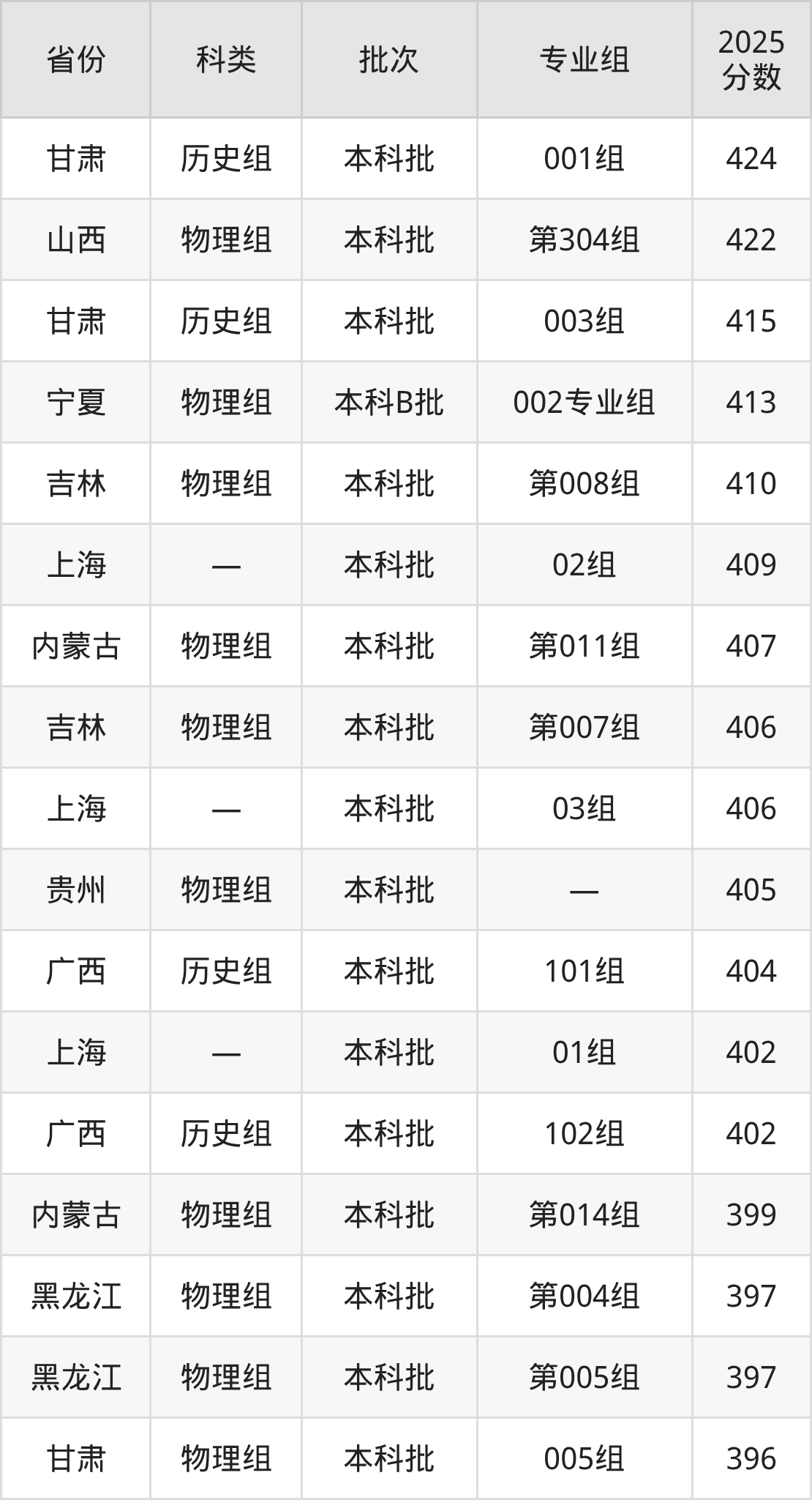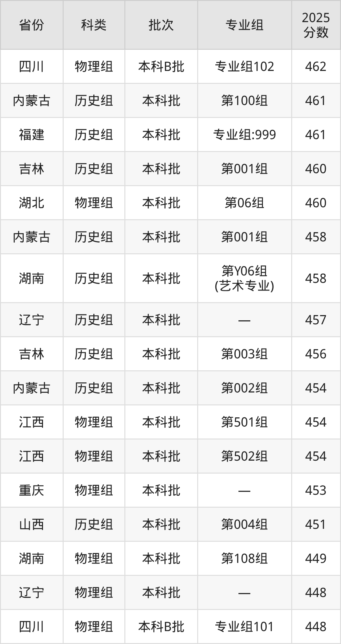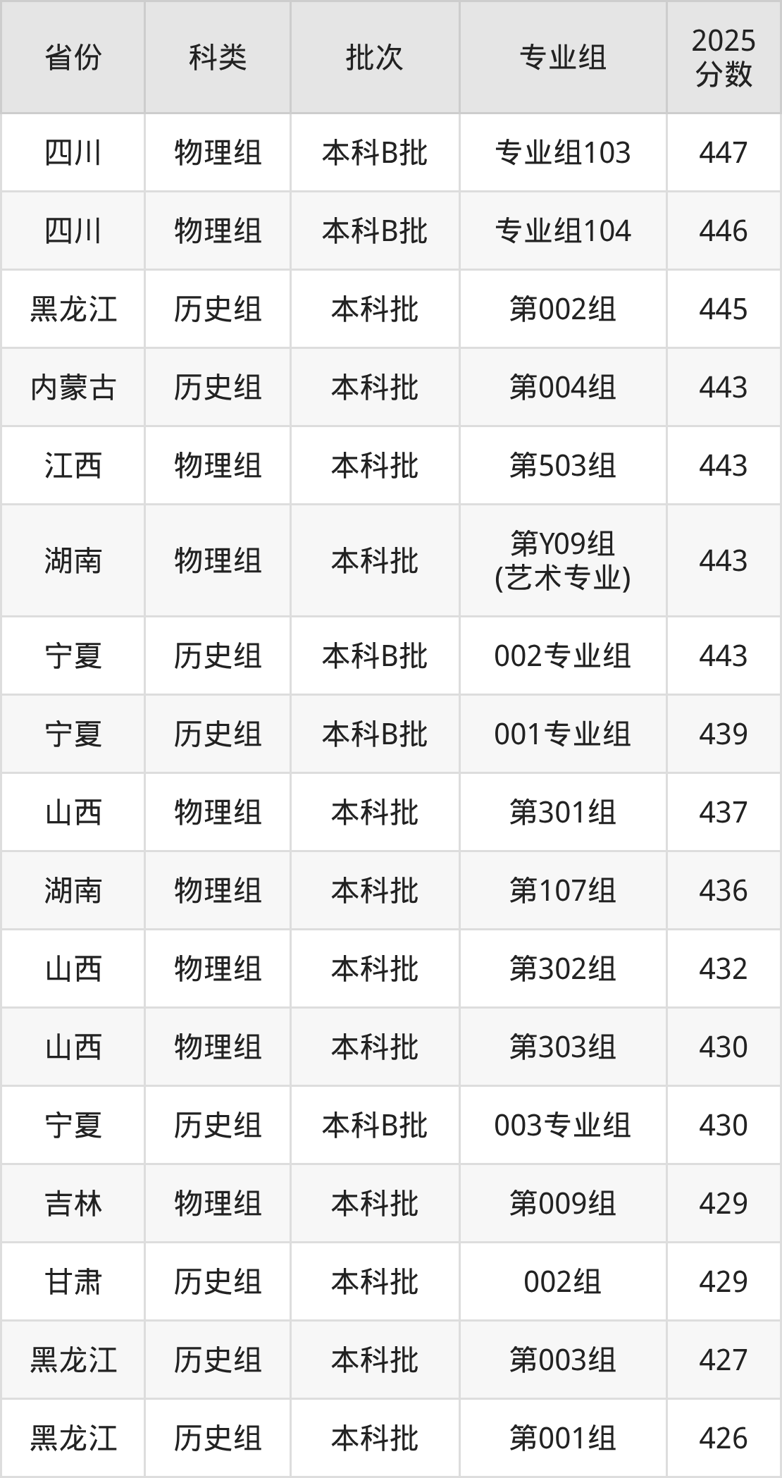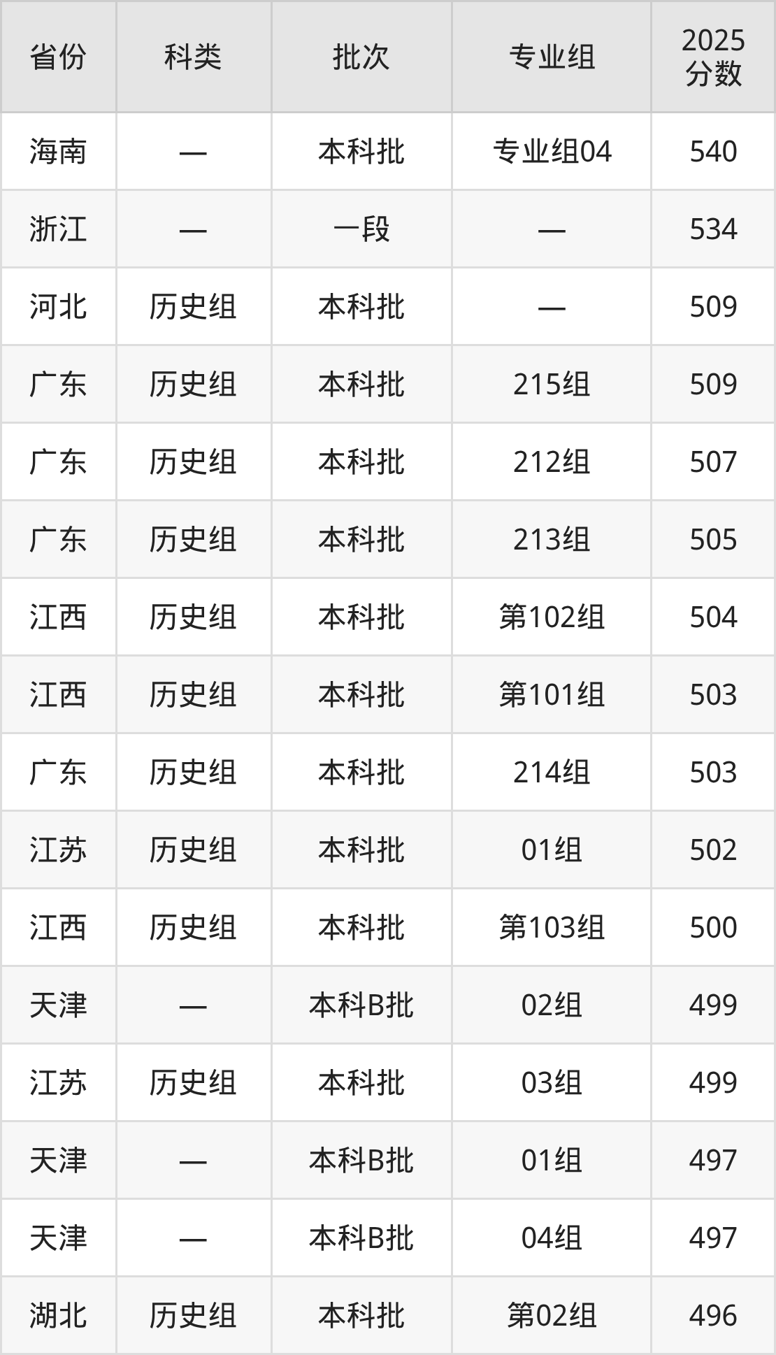 下面是天津商业大学宝德学院2025年在全国各省的录取分数线一览表,供参考: