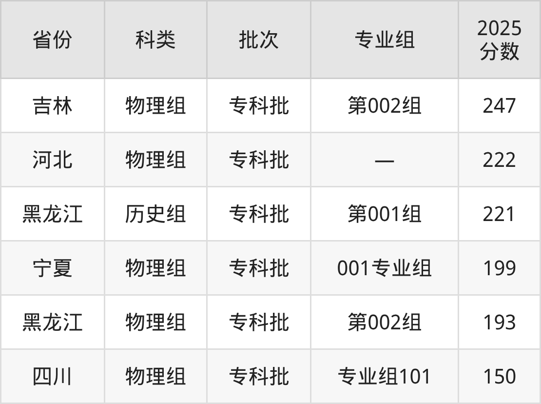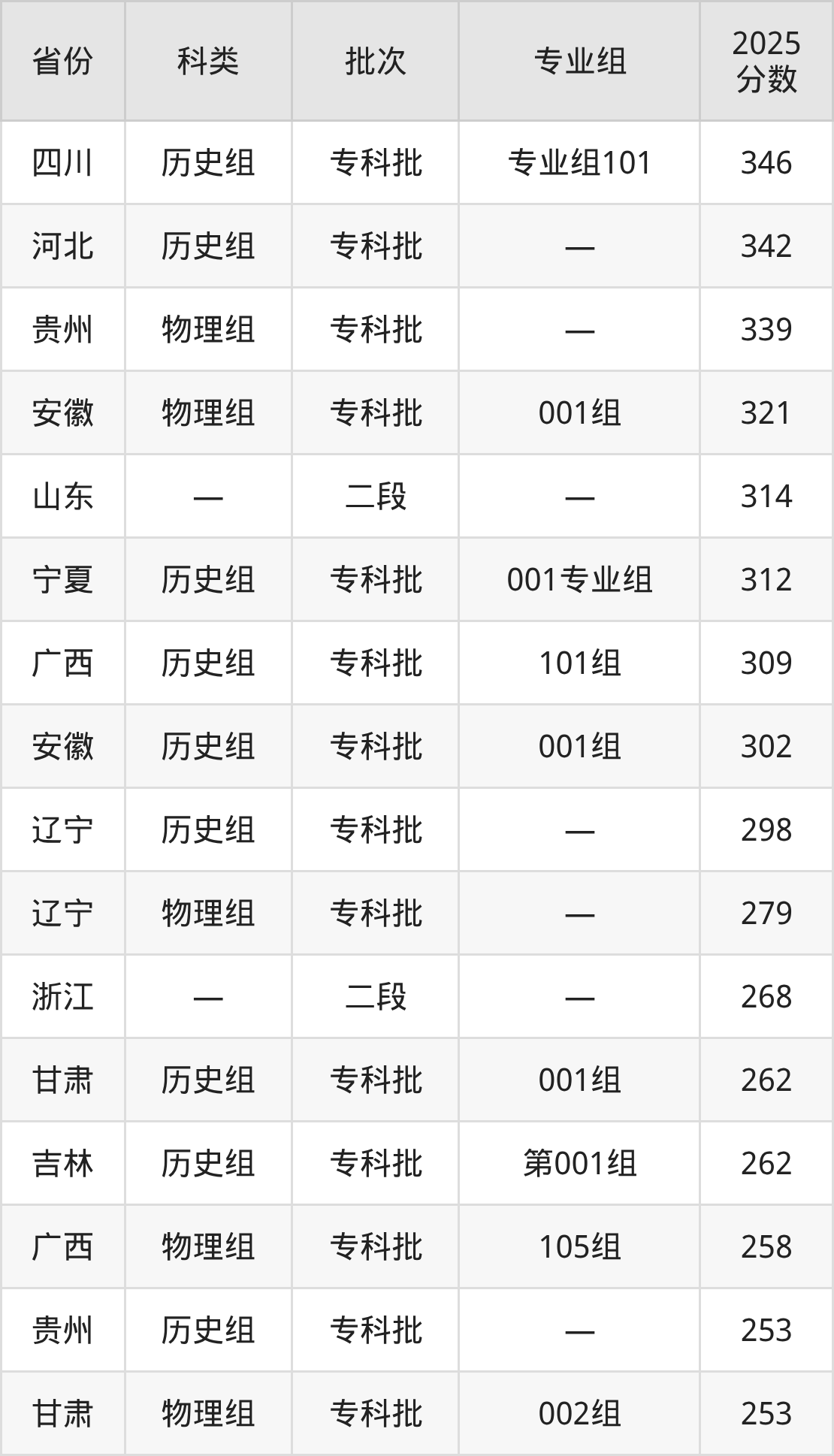下面是宝鸡三和职业学院2025年在全国各省的录取分数线一览表,供参考: