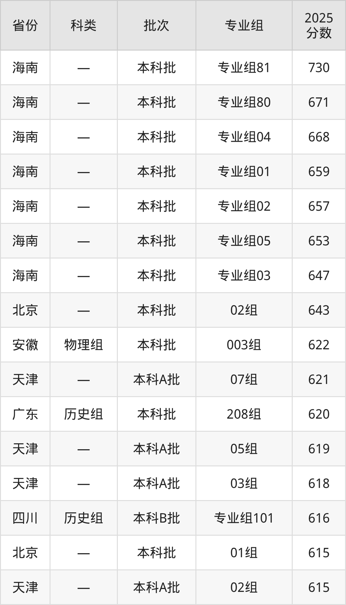 而海南地区考生的分数门槛最高,2025年西北大学专业组81在海南招生最低分为730分,考生至少要超本科线250分才有可能被录取。