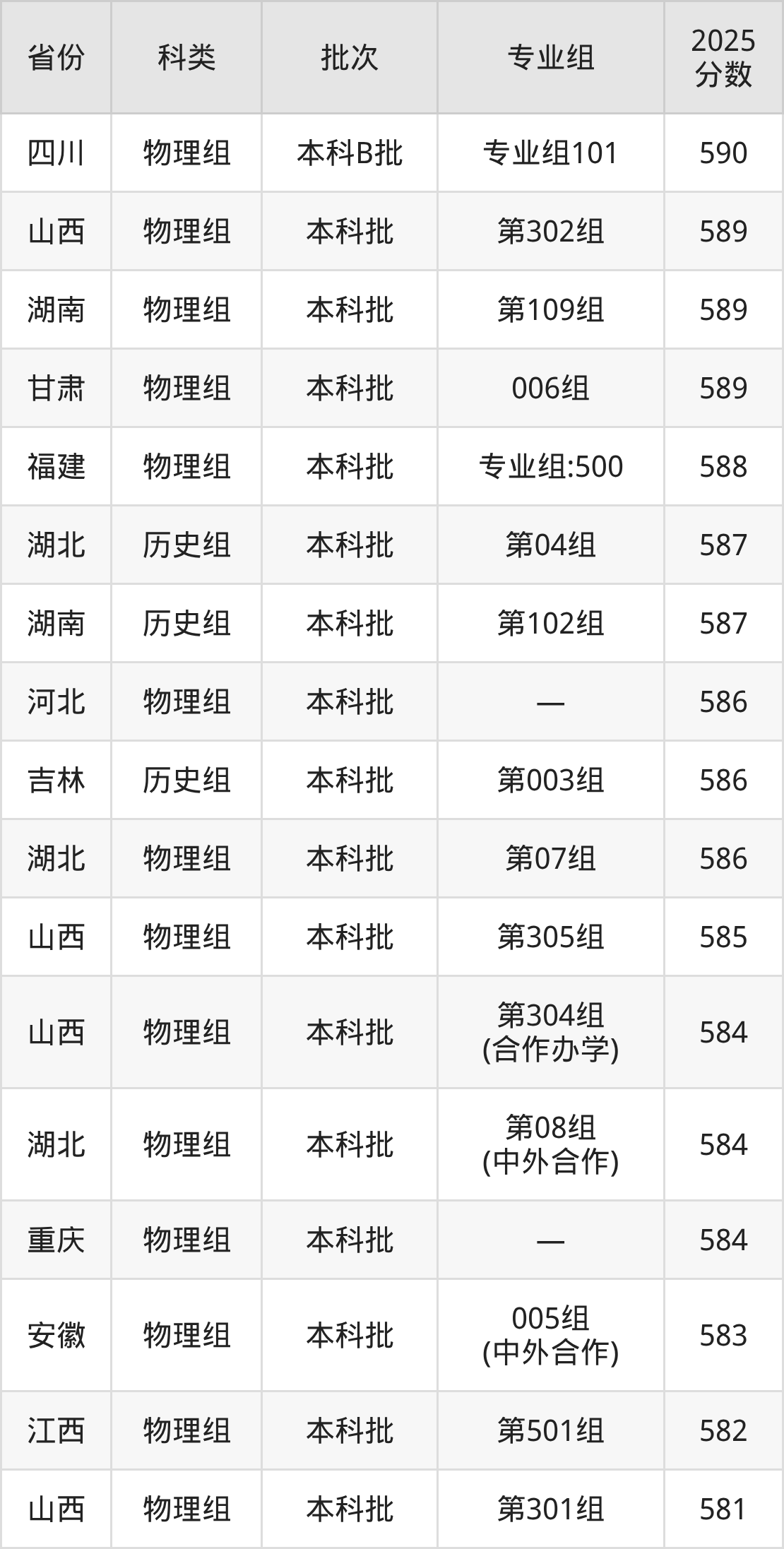 下面是西北大学2025年在全国各省的录取分数线一览表,供参考: