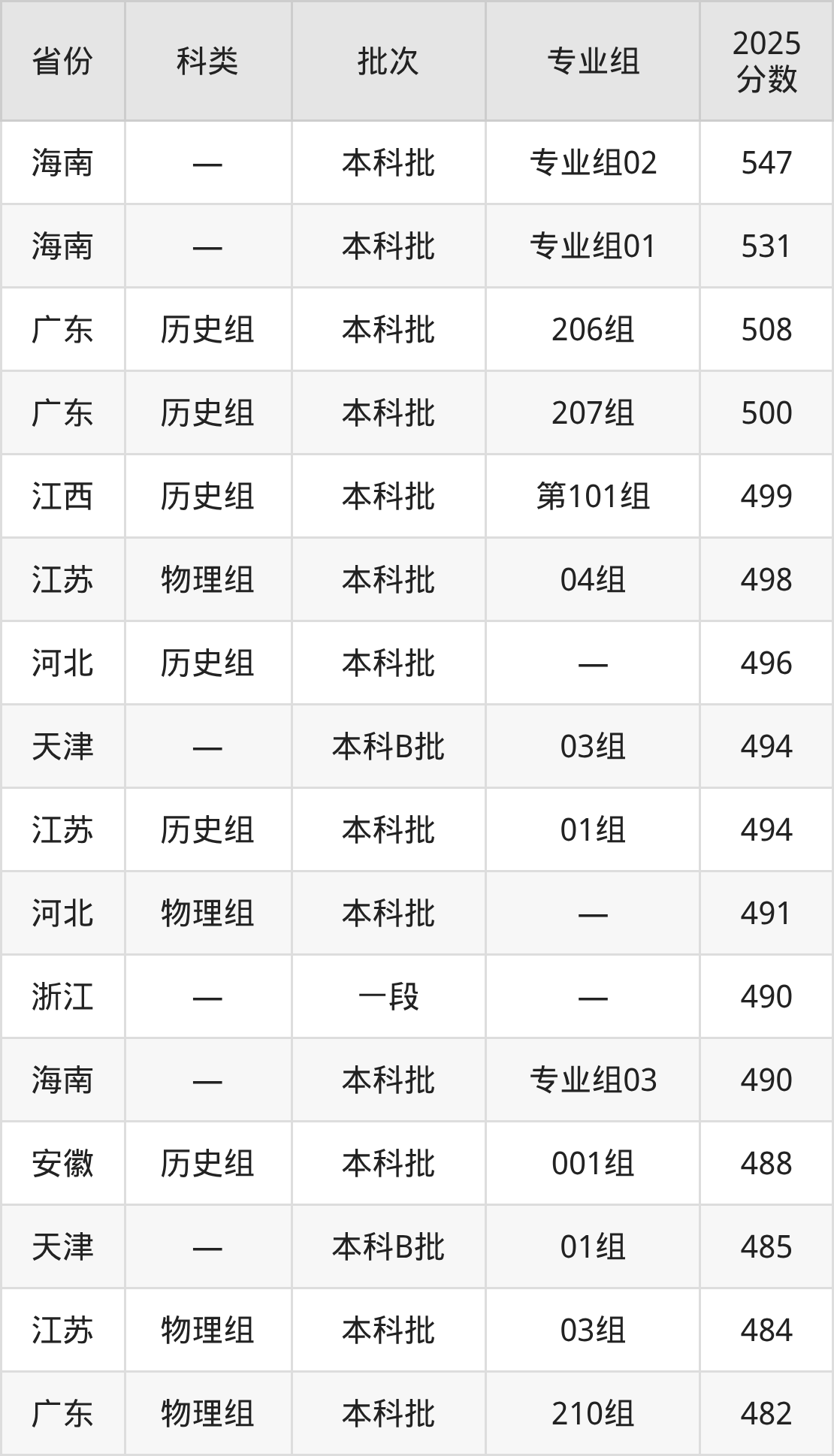 而海南地区考生的分数门槛最高,2025年武汉纺织大学外经贸学院专业组02在海南招生最低分为547分,考生至少要超本科线67分才有可能被录取。