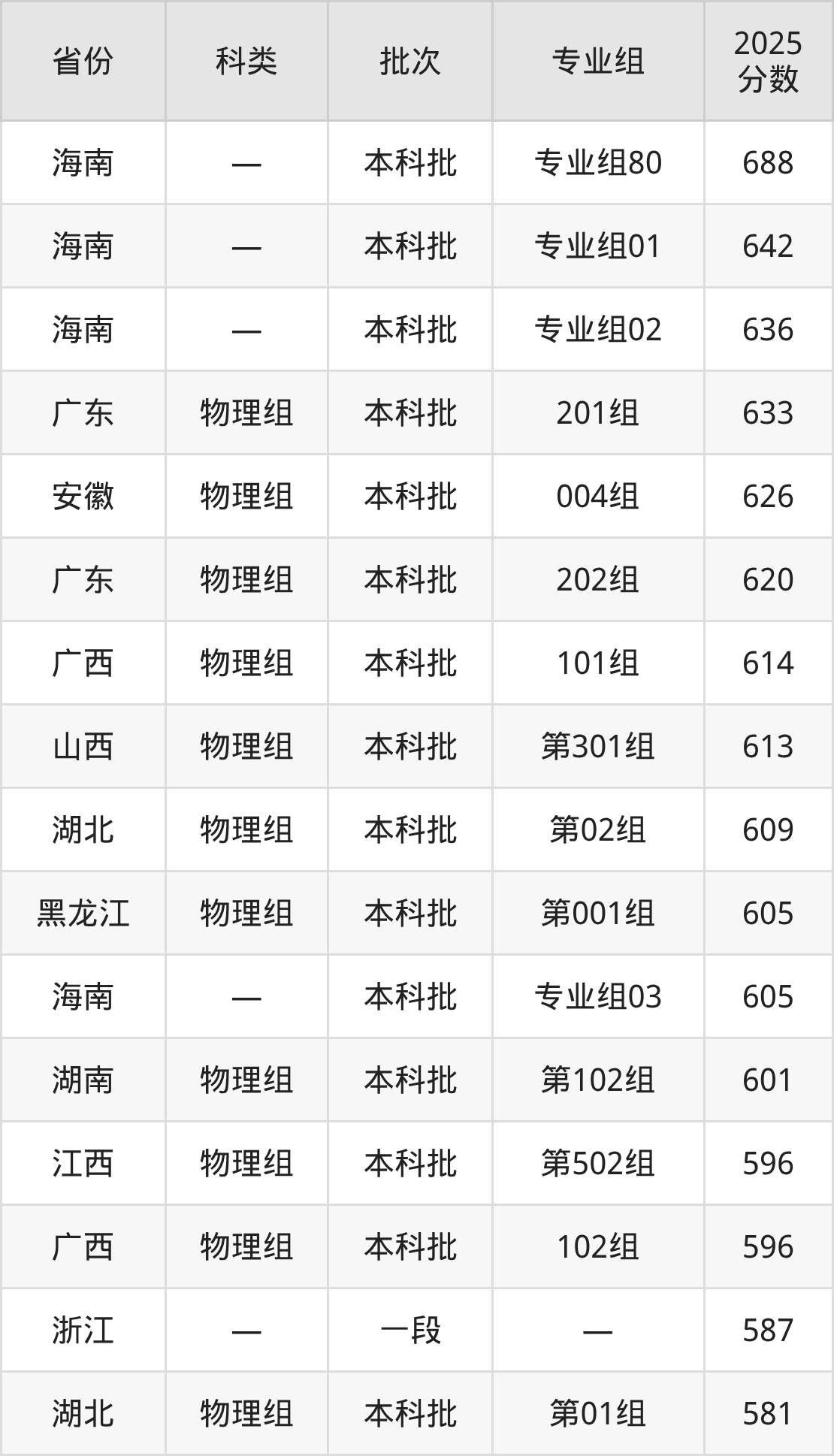 下面是广州医科大学2025年在全国各省的录取分数线一览表,供参考: