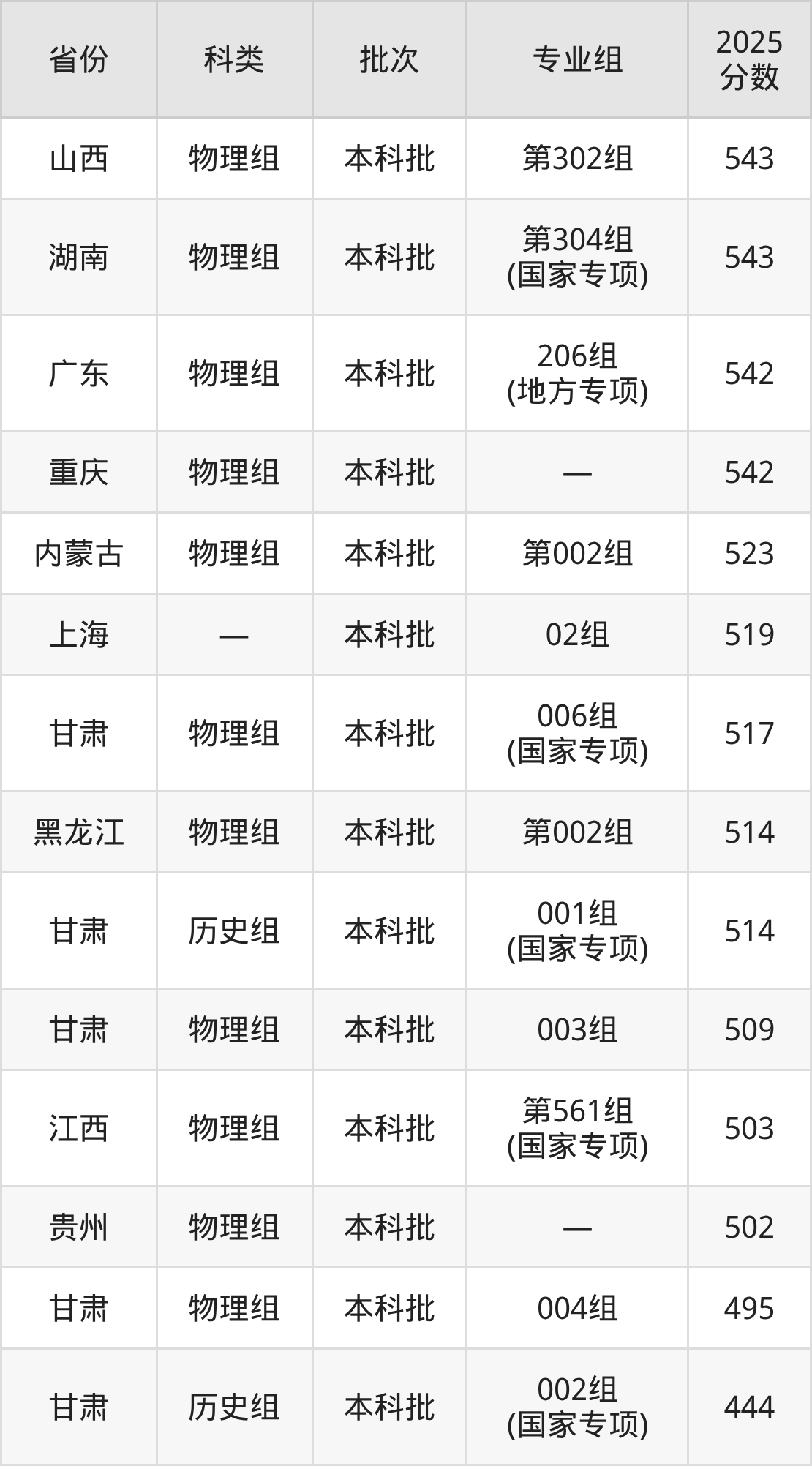 2025年广州医科大学在全国普通批次招生的录取分数范围位于444~688分之间,其中省内分数范围为542分~633分,物理组最低分专业组为“206组(地方专项)”,考生542分即可报考,历史组最低分专业组为“208组(地方专项)”,考生549分即可报考。