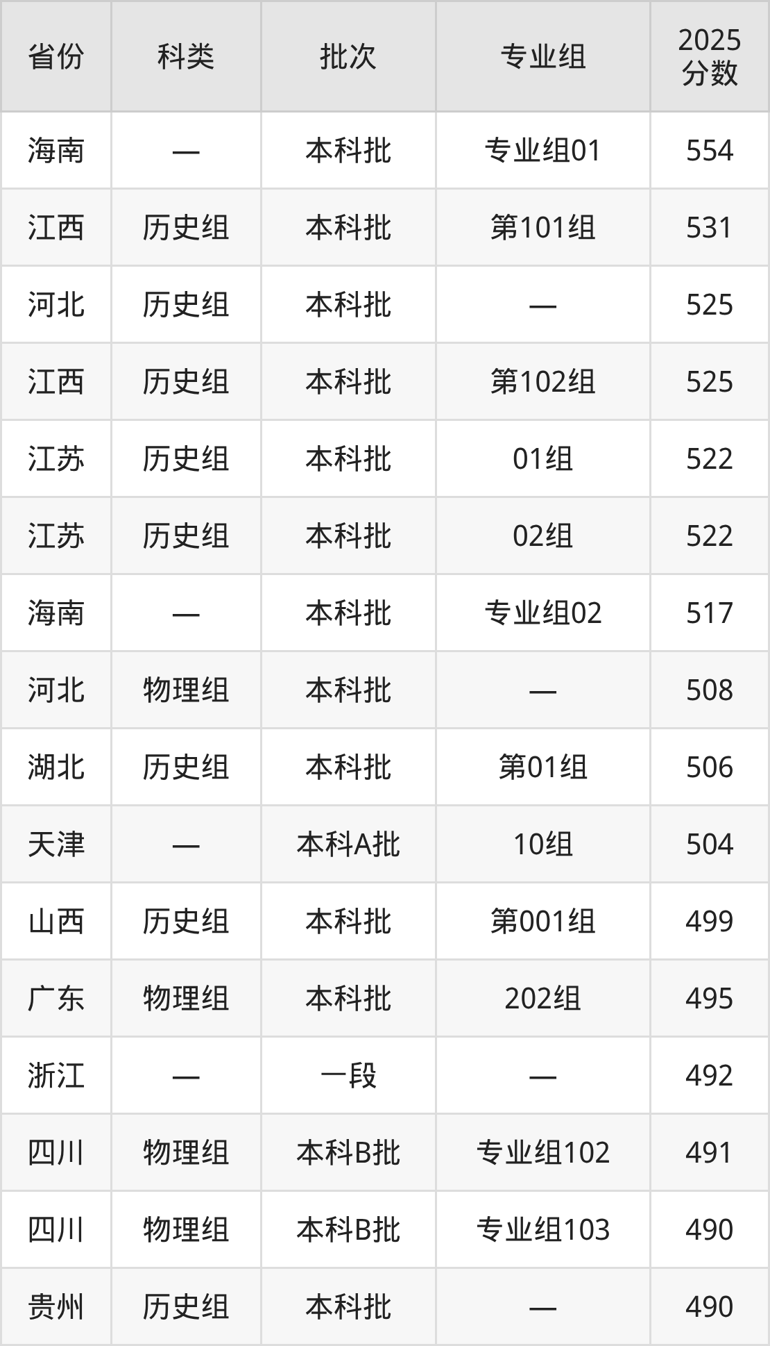 而海南地区考生的分数门槛最高,2025年普洱学院专业组01在海南招生最低分为554分,考生至少要超本科线74分才有可能被录取。